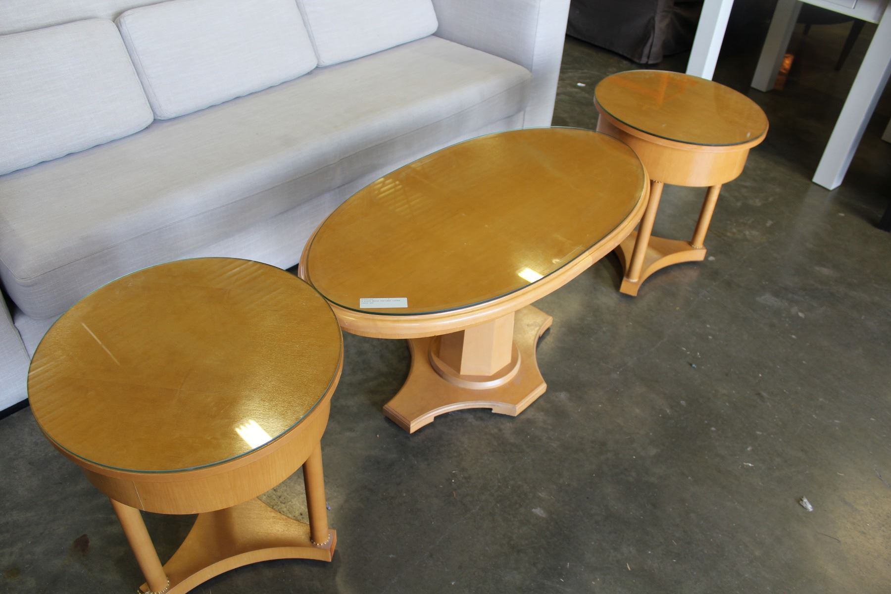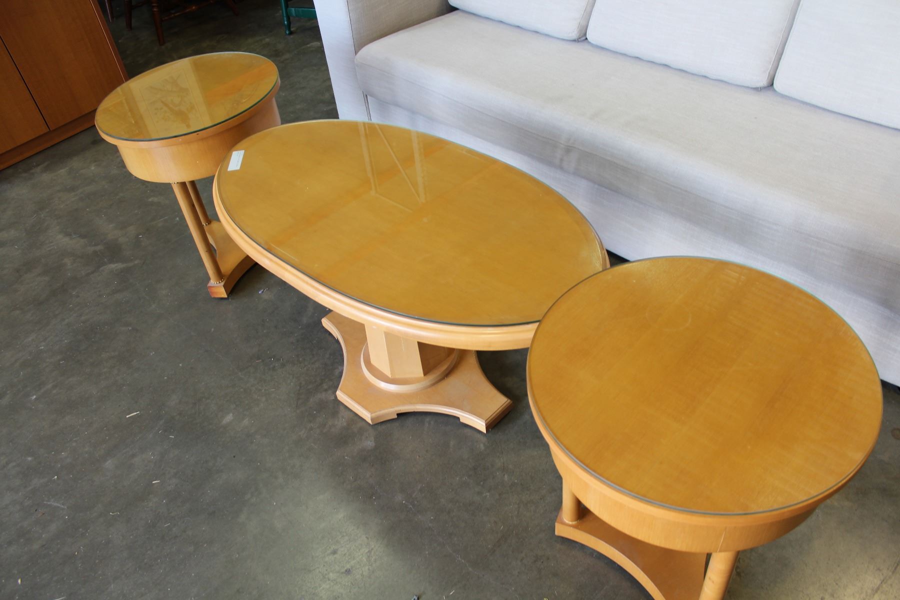 3 PIECE MAPLE DESIGNER COFFEE TABLE SET