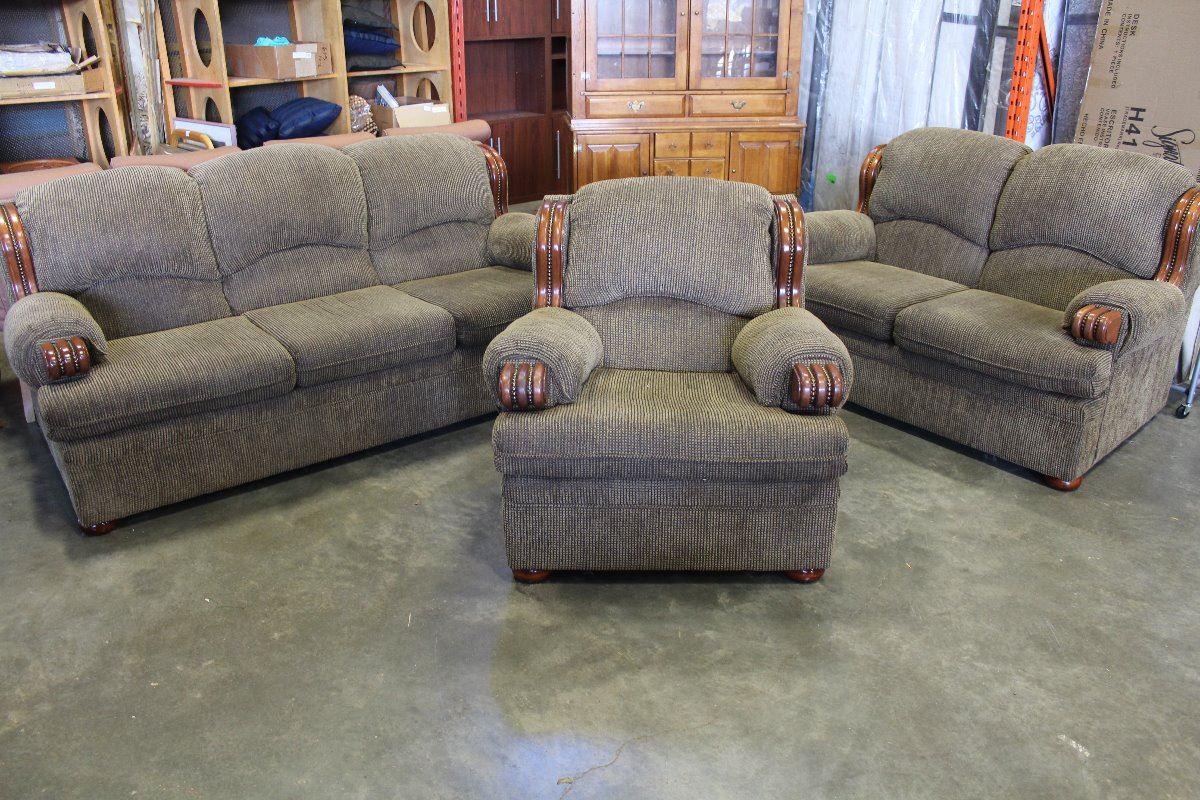 3 PIECE PILLOW BACK WOOD FRAME SOFA LOVESEAT AND CHAIR