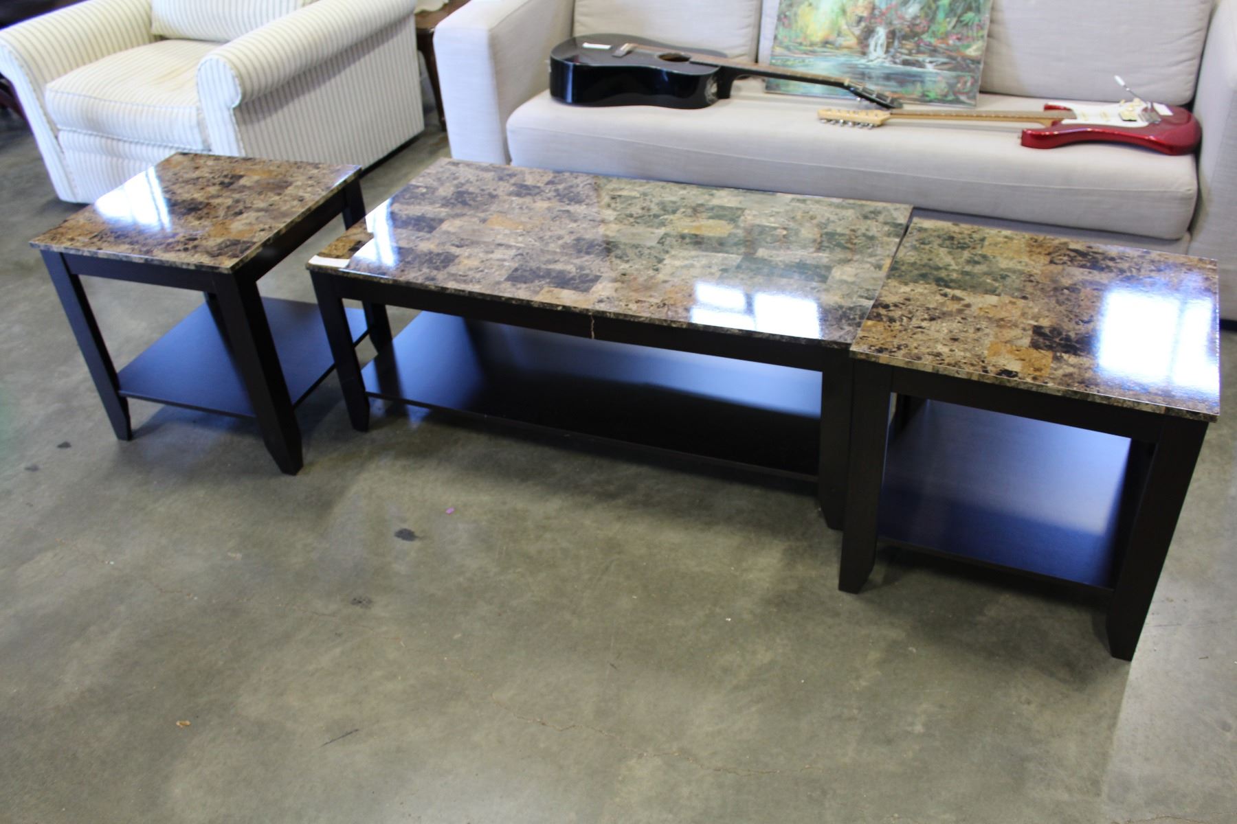 3-PIECE STONE LOOK COFFEE TABLE SET