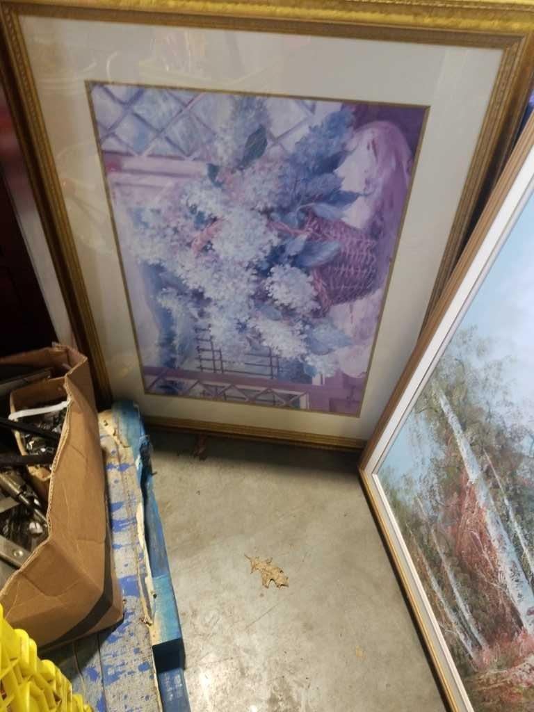 3 PIECES OF ART - 2 LARGE FRAMED PRINTS AND LARGE FRAMED PAINTING
