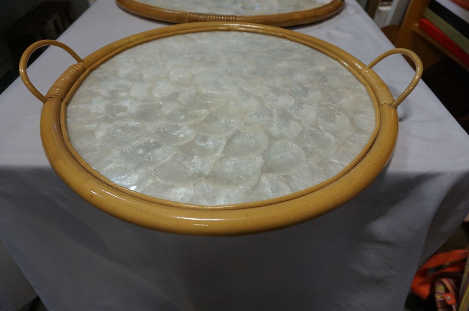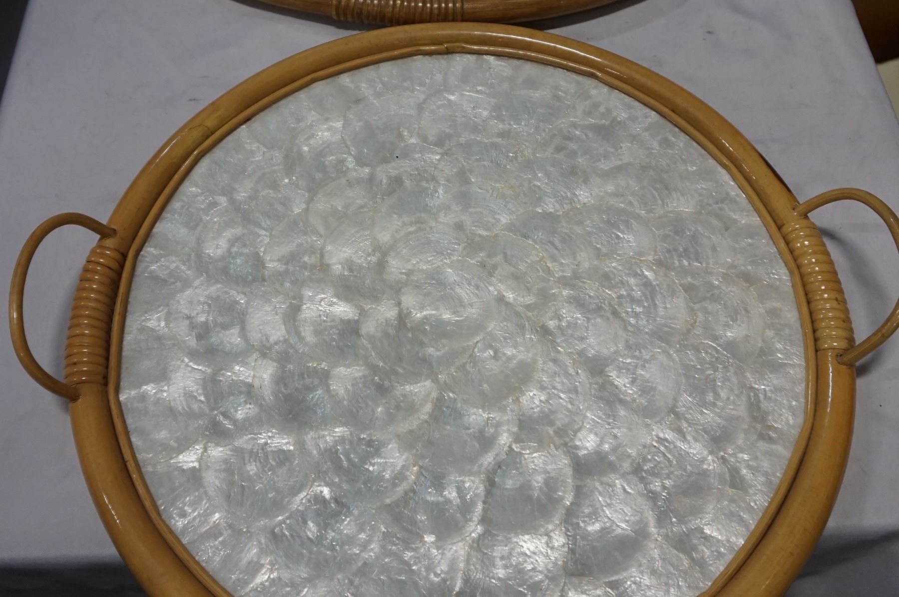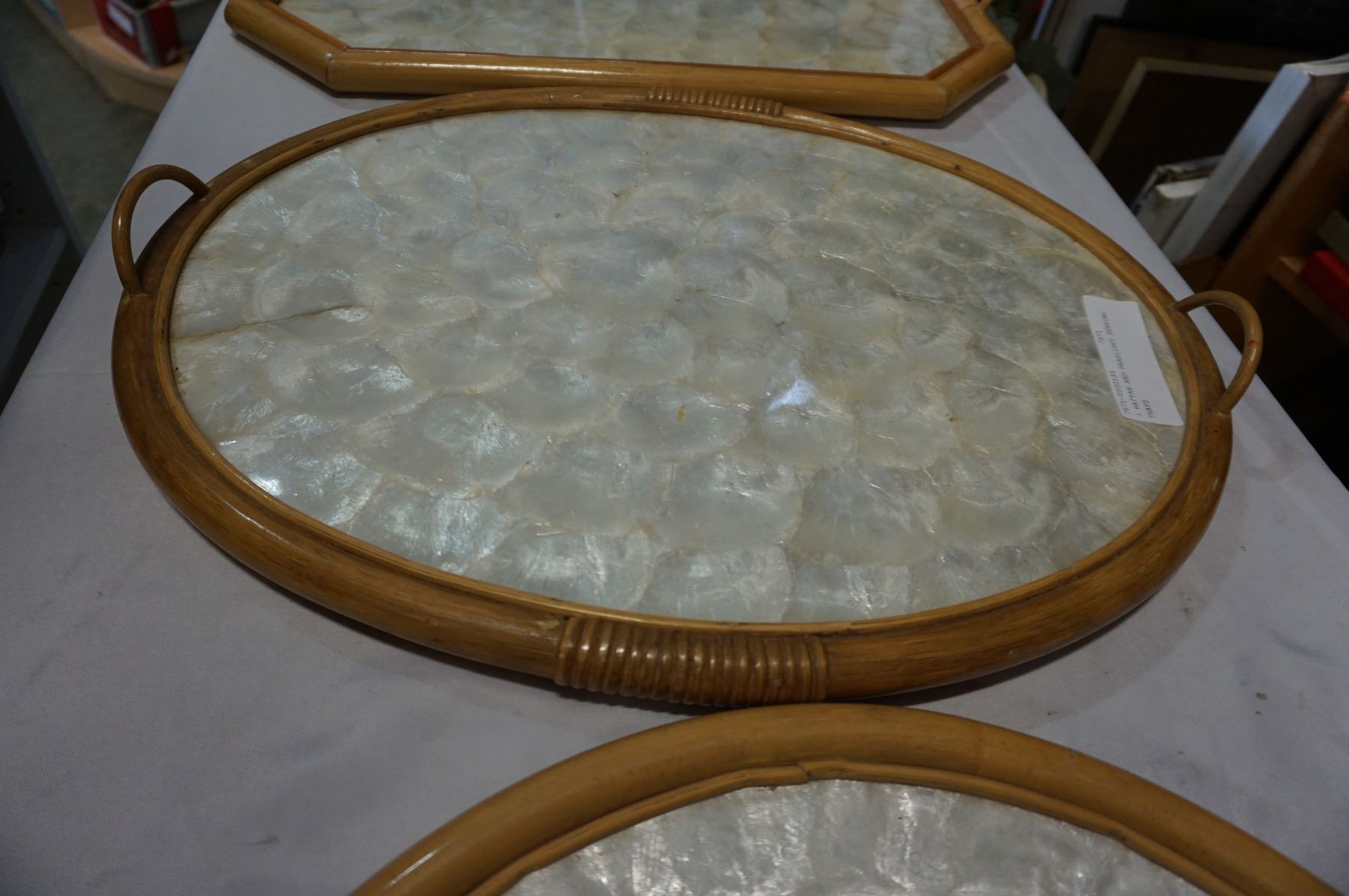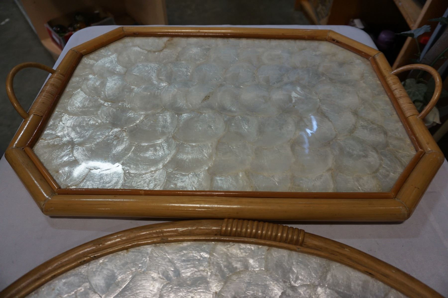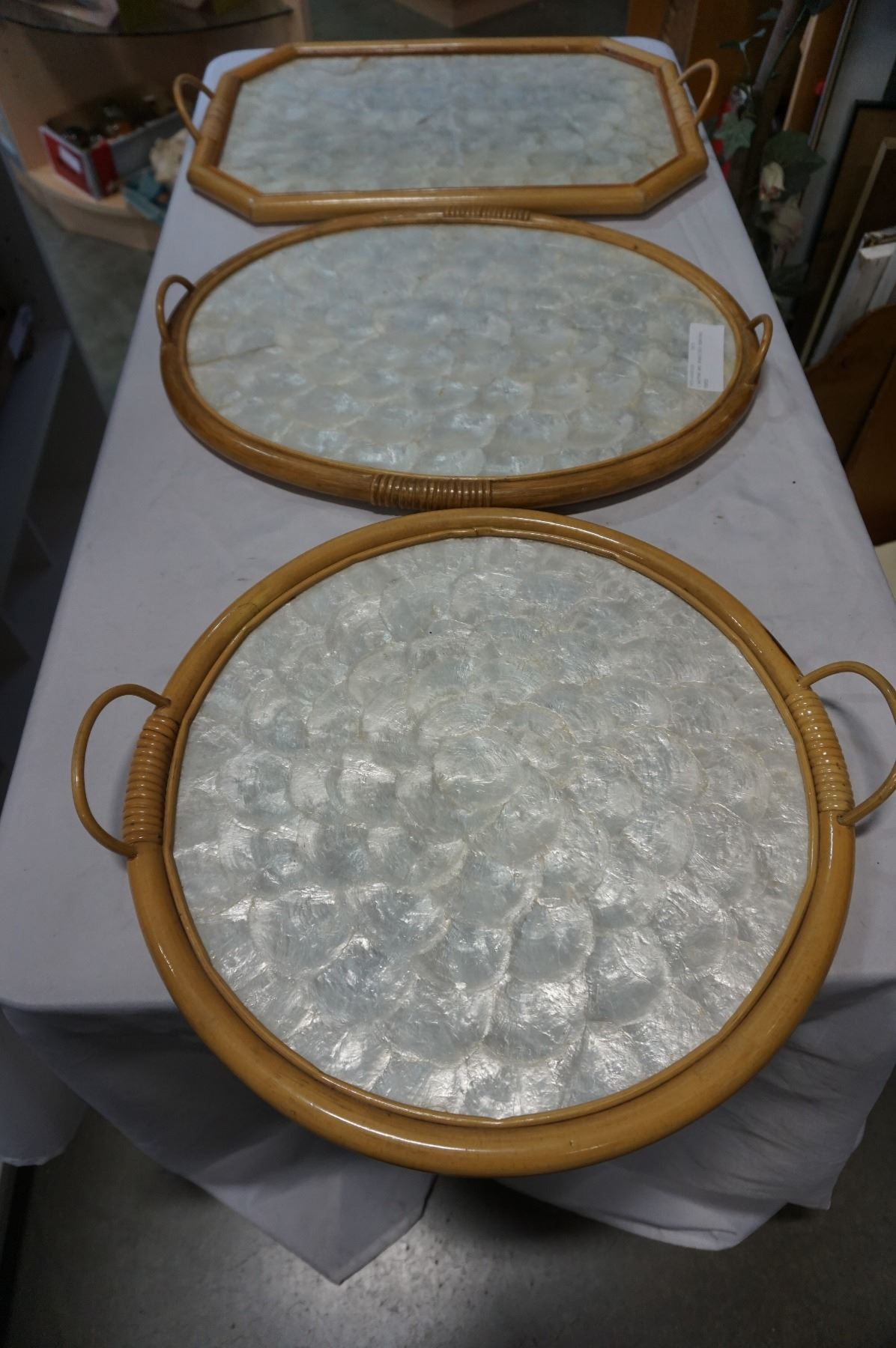 3 RATTAN AND PEARLIZED SERVING TRAYS
