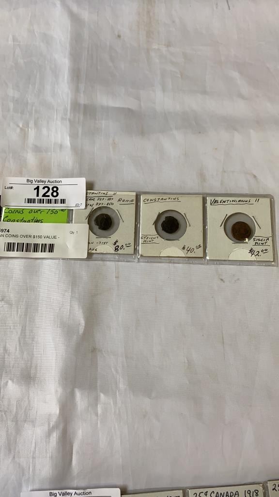3 ROMAN COINS OVER $150 VALUE - CONSTANTIUS, CONSTANTIUS II, VALENTINIUS II