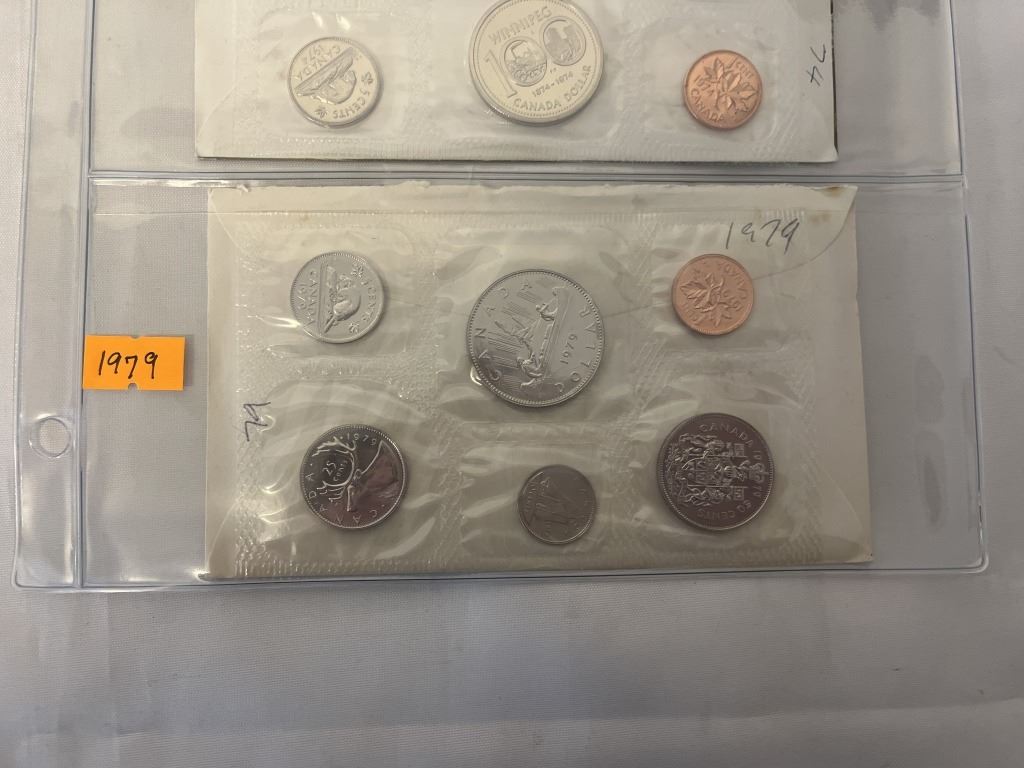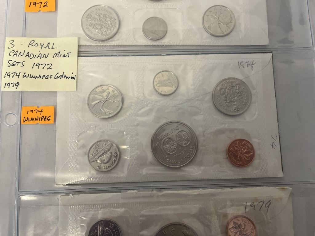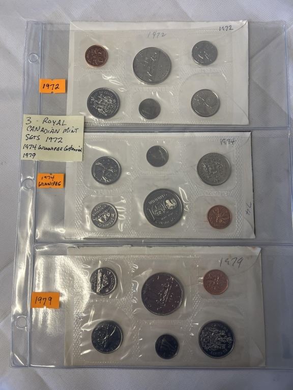 3 ROYAL CANADIAN MINT SETS 1972, 1974 WINNEPEG CENTENNIAL, 1979