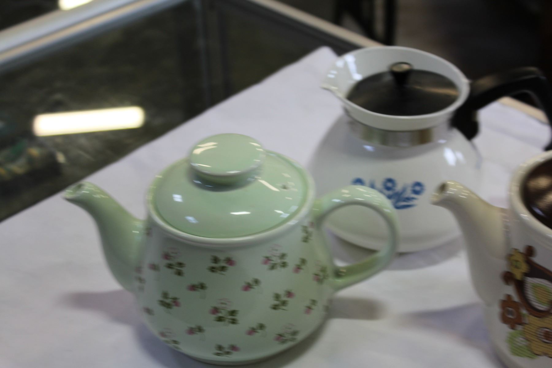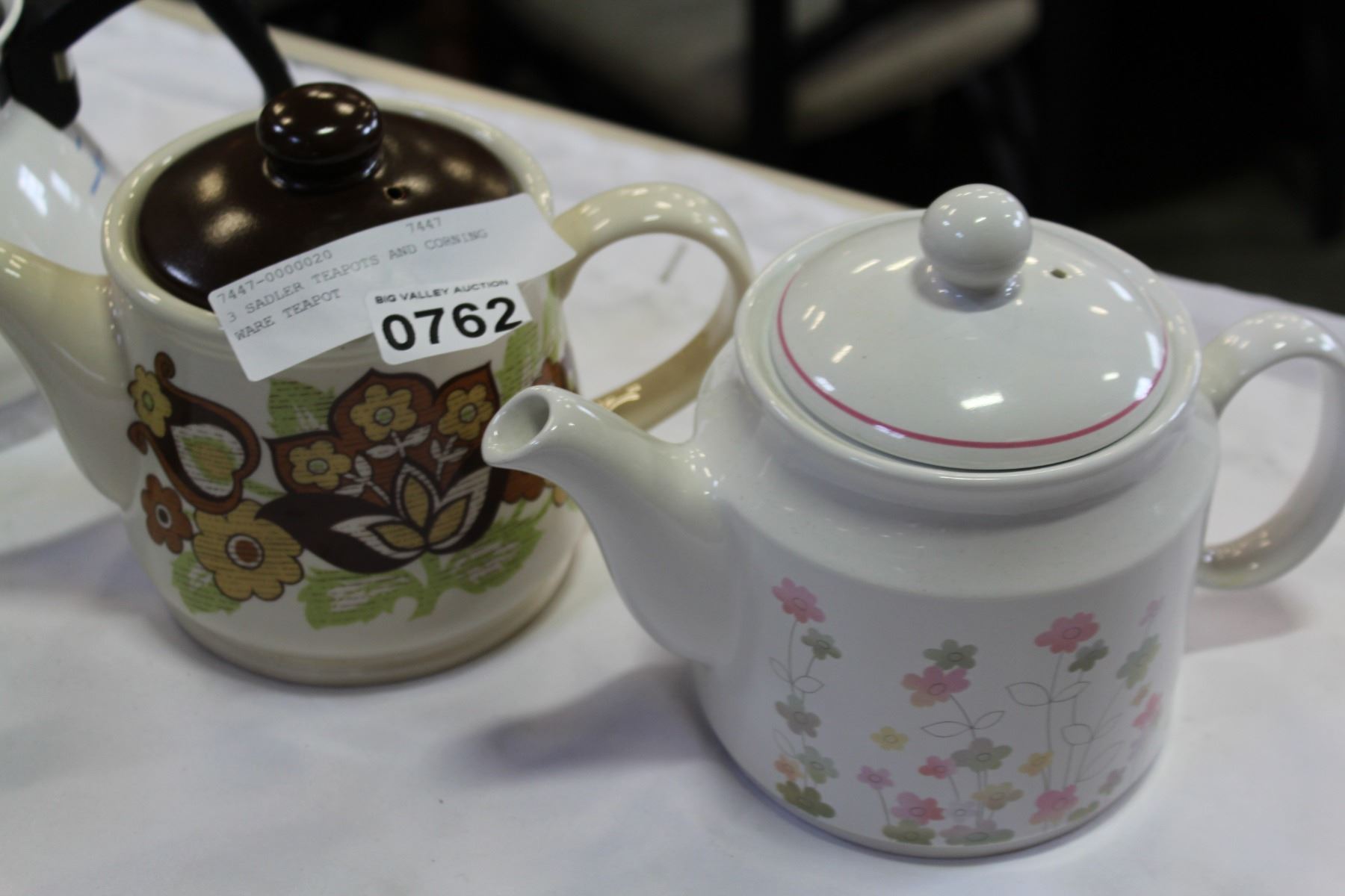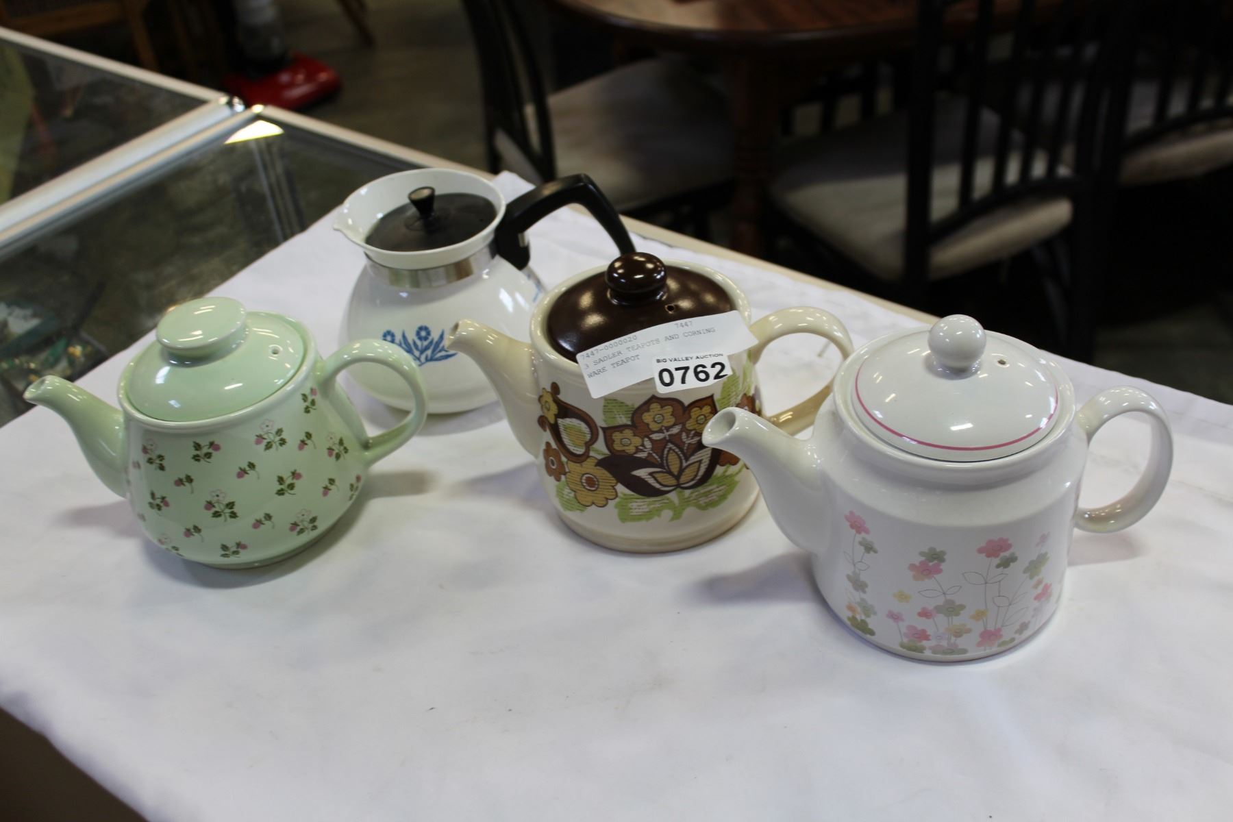 3 SADLER TEAPOTS AND CORNING WARE TEAPOT