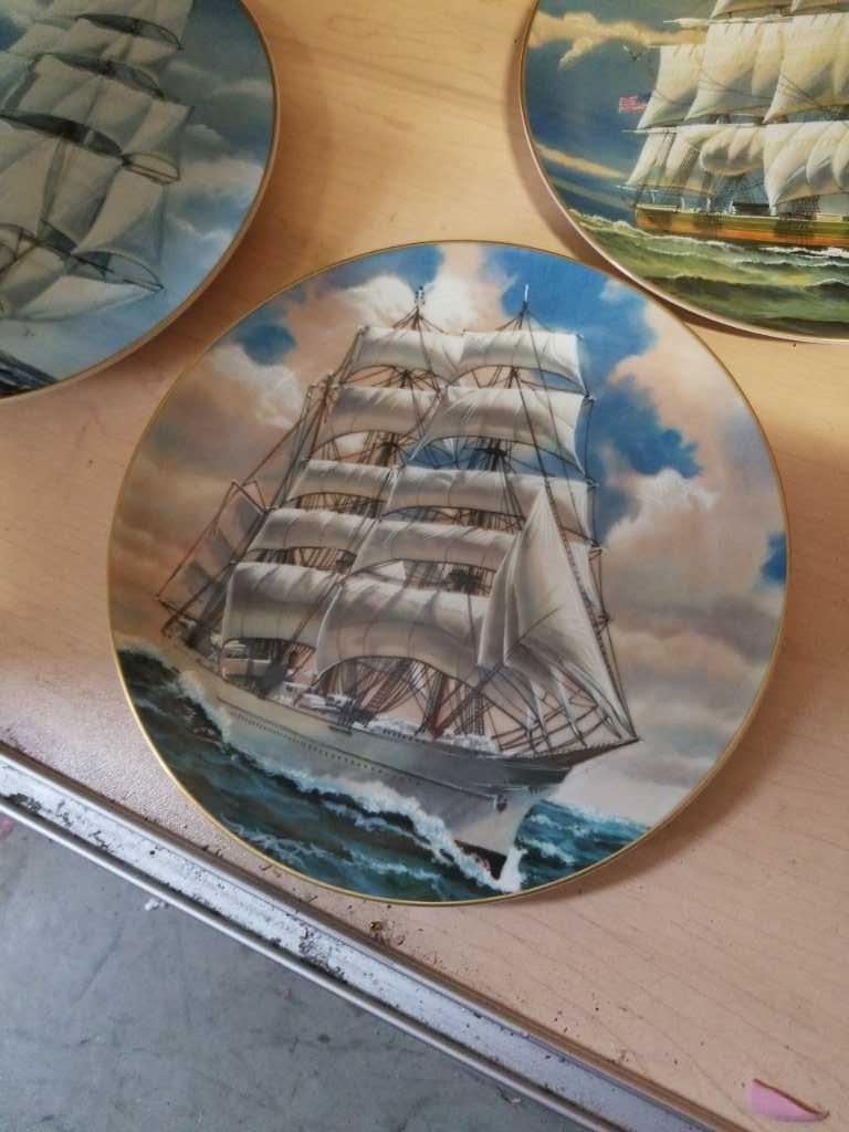 3 SHIP COLLECTOR PLATES AND 2 JUGS