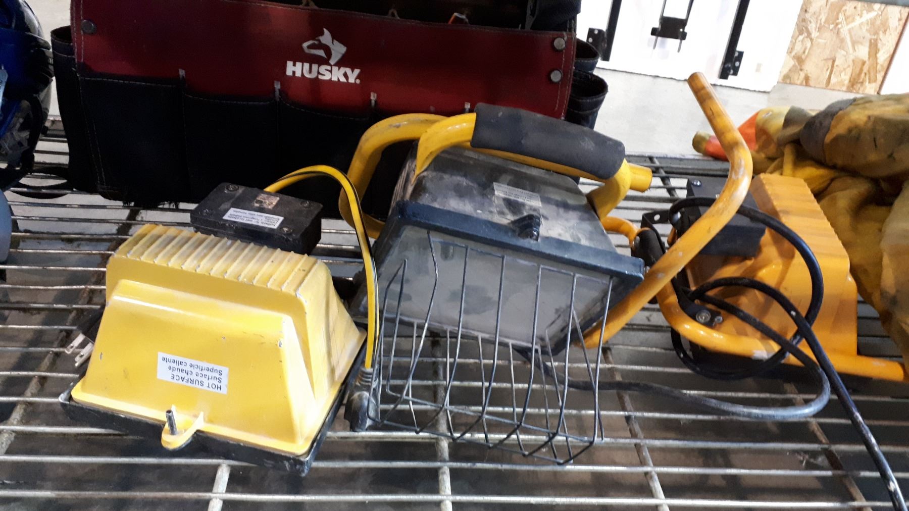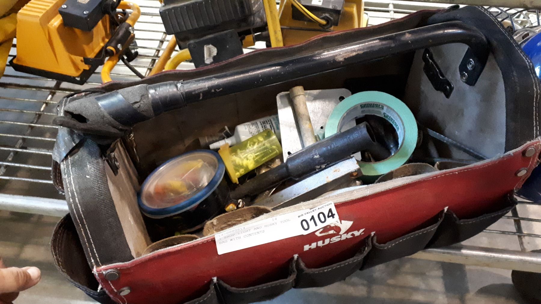 3 SHOP LIGHT AND HUSKY TOOL BAG WITH CONTENTS