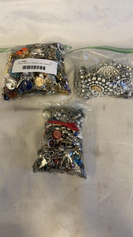 3 SMALL BAGS OF JEWLERY AND JEWLERY PARTS