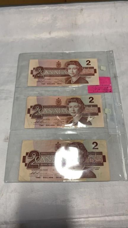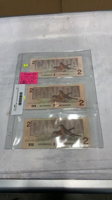 3 SPECIAL 1986 2 DOLLR BILLS W/ SPECIAL SERIAL NUMBERS