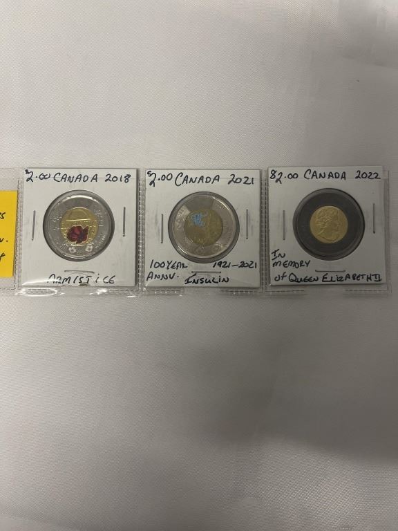 3 SPECIALTOONIES 2018 ARMSITICE, 2021 100 YEAR ANNIVERSARY OF INSULIN, 2022 IN MEMORY OF QUEEN ELIZABETH II