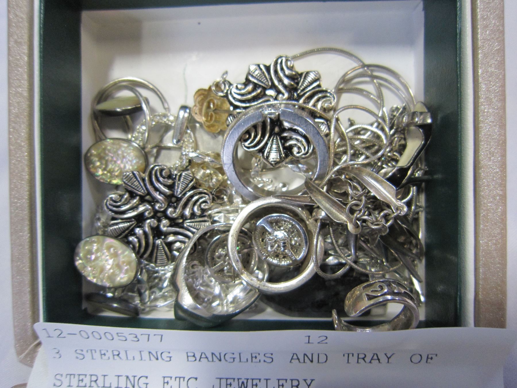 3 STERLING BANGLES AND TRAY OF STERLING ETC JEWELERY
