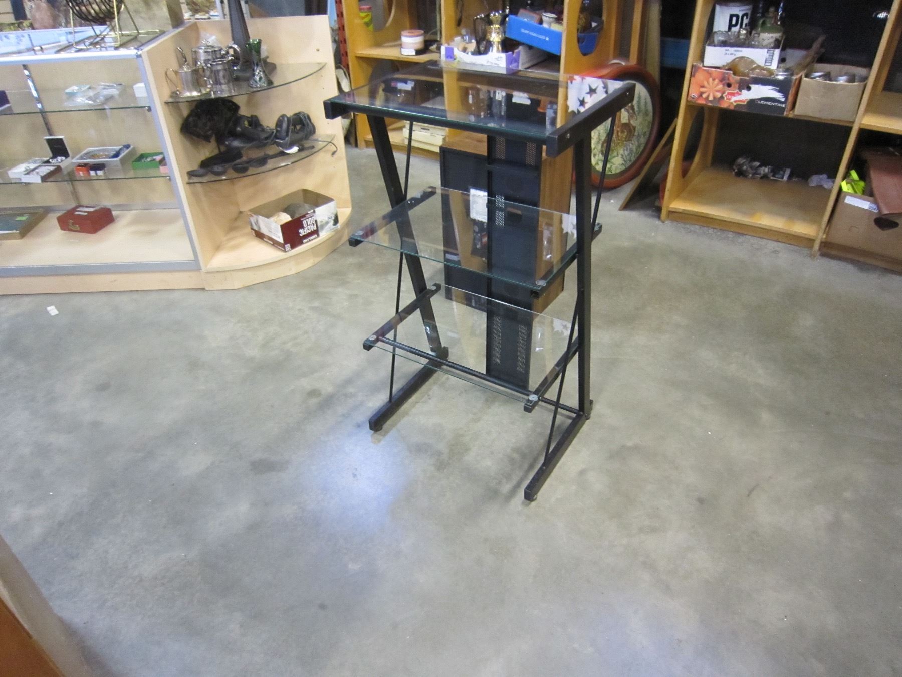3 TIER METAL AND GLASS DISPLAY SHELF