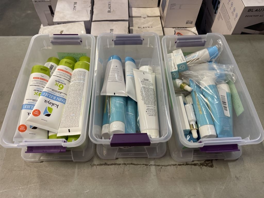 3 TOTES OF ASSORTED BEAUTY AND COSMETIC ITEMS