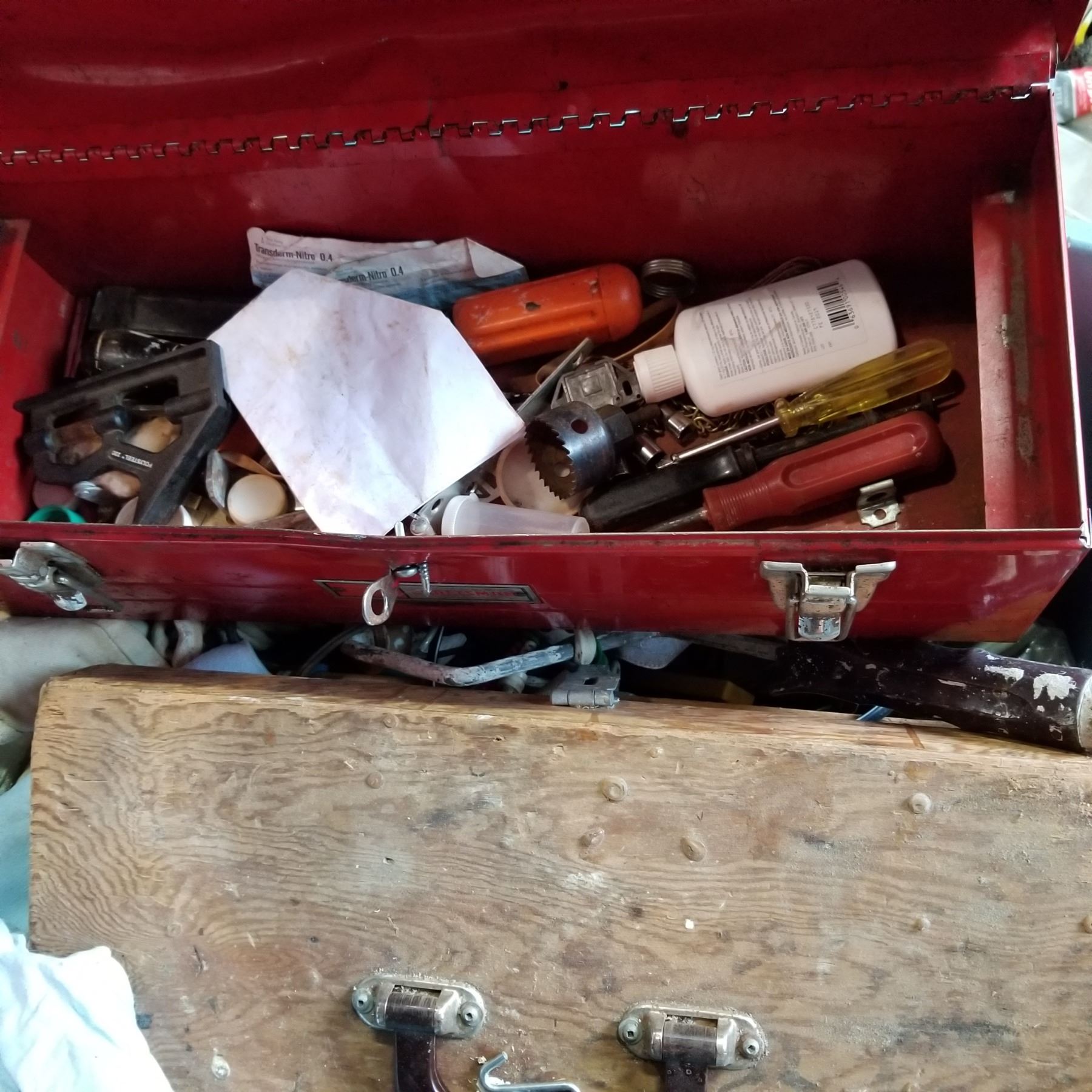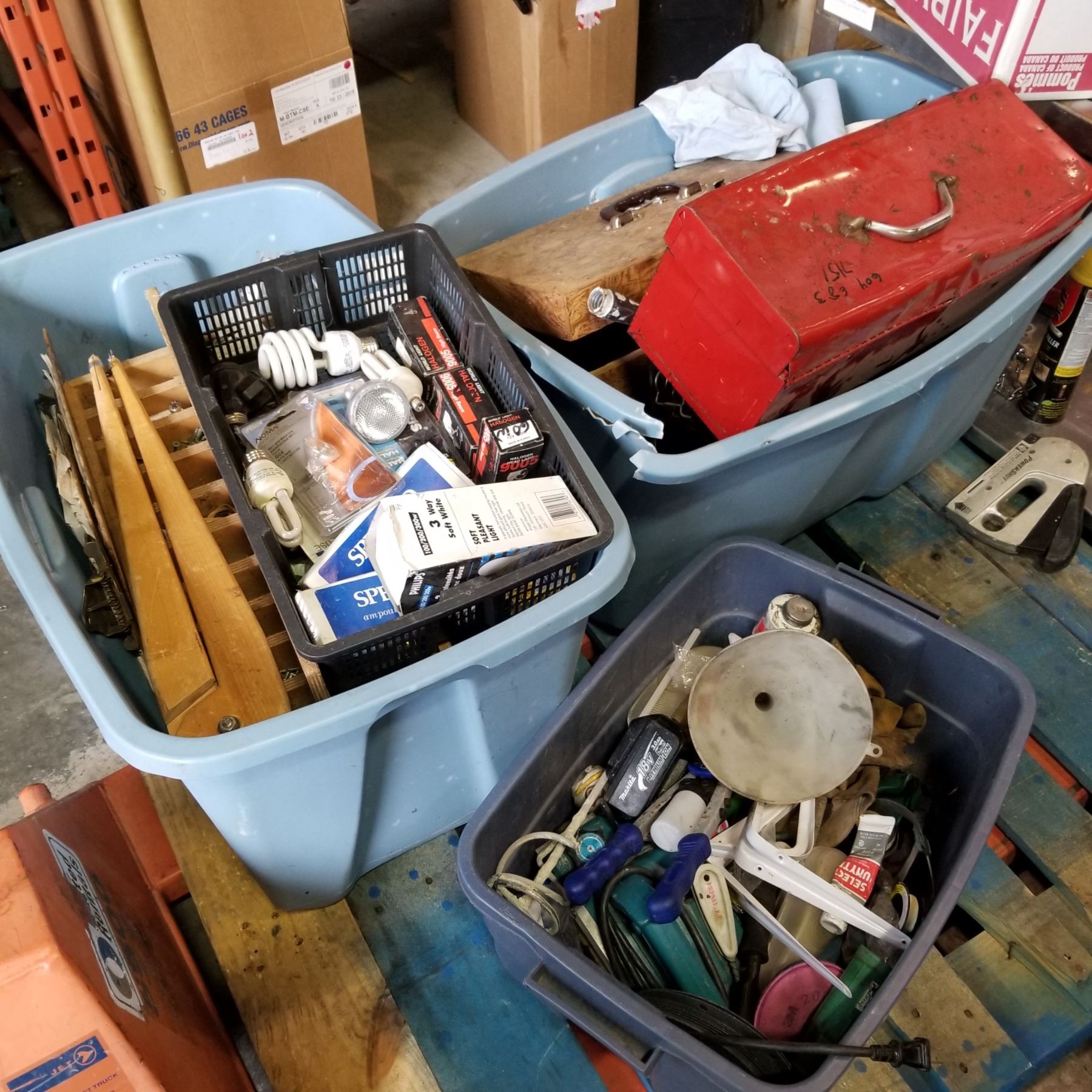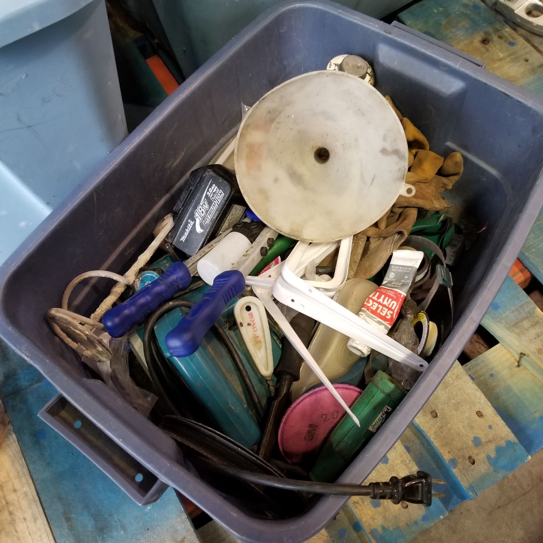 3 TOTES OF TOOLS AND SHOP SUPPLIES