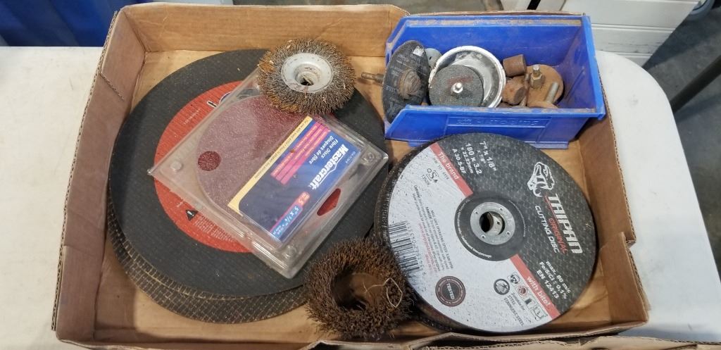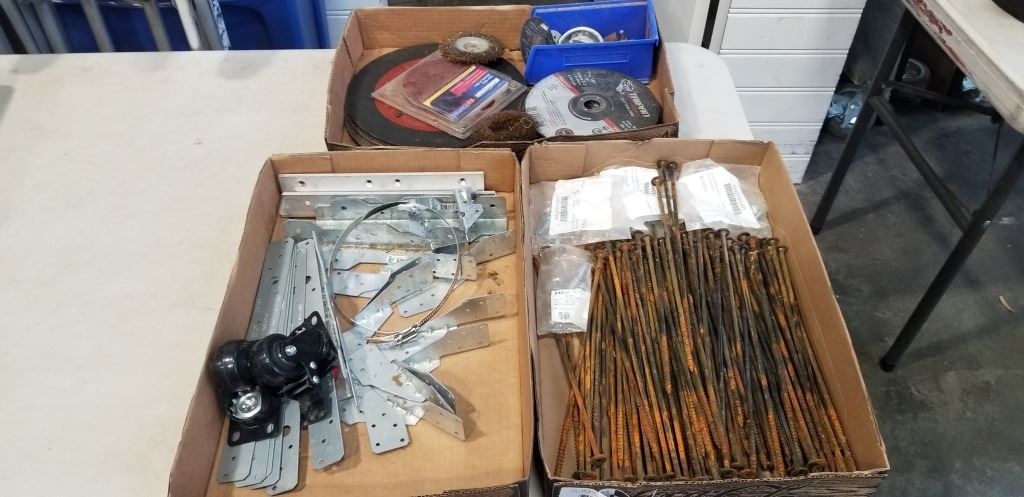 3 TRAYS OF GRINDING DISCS, BOLTS, ETC