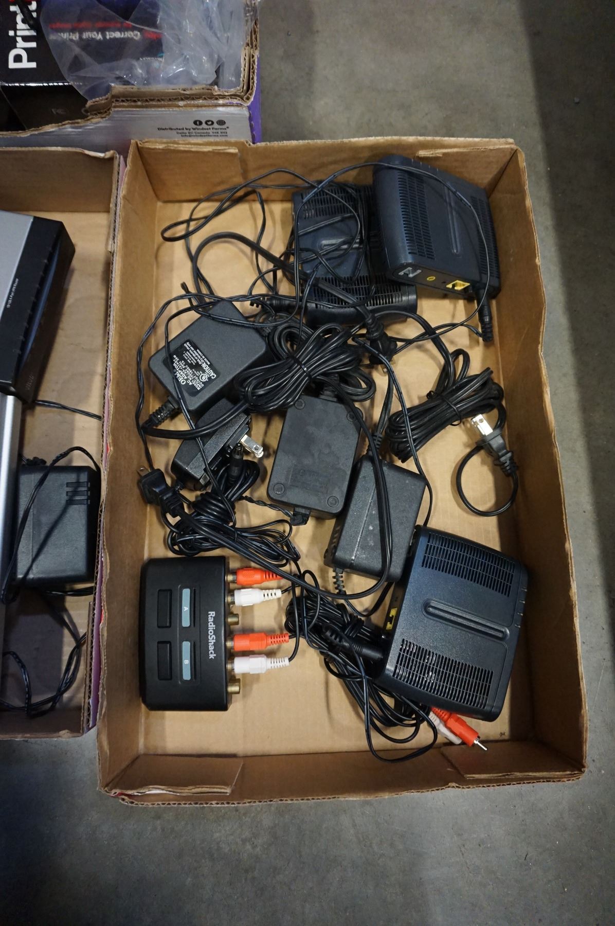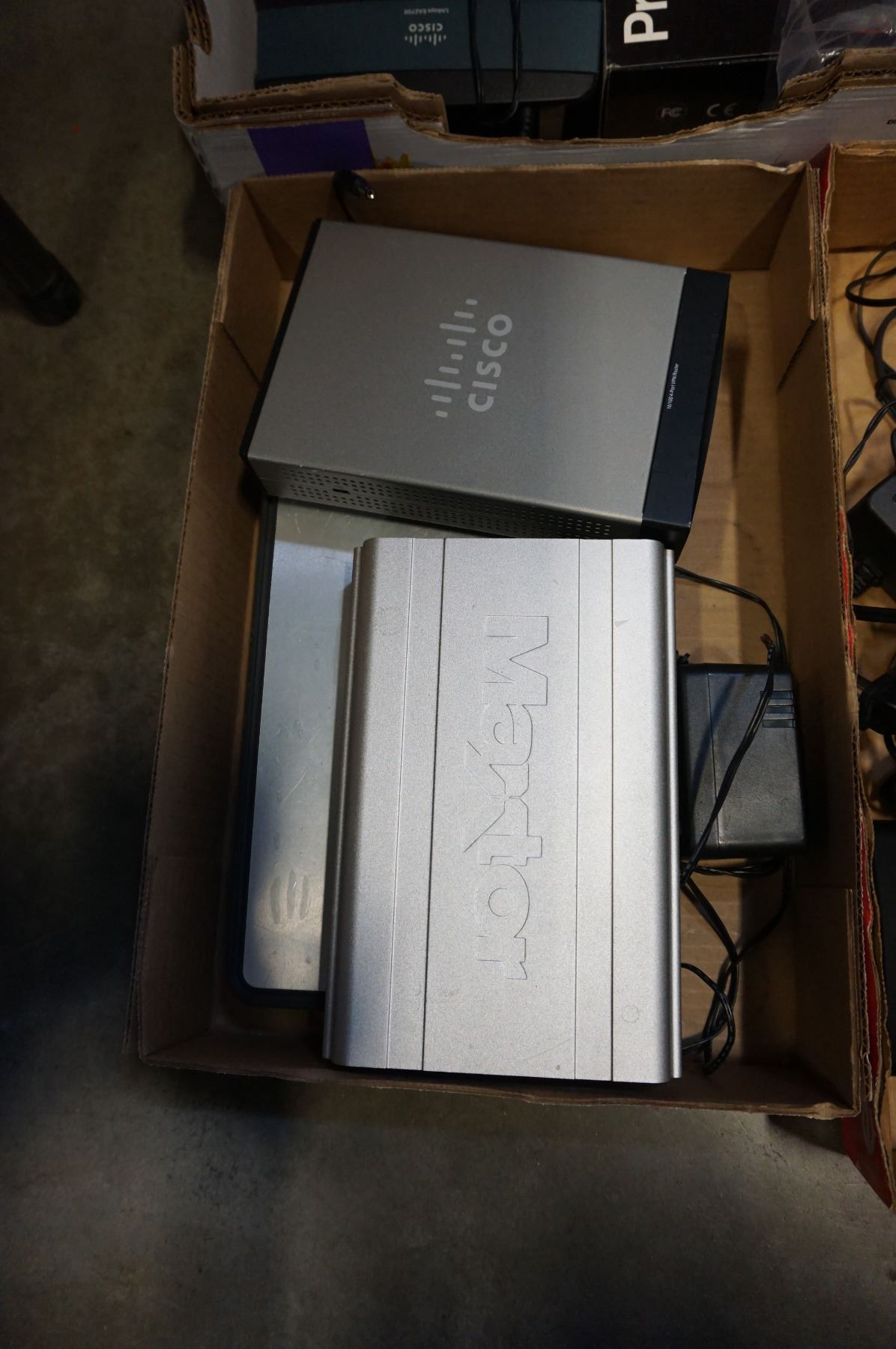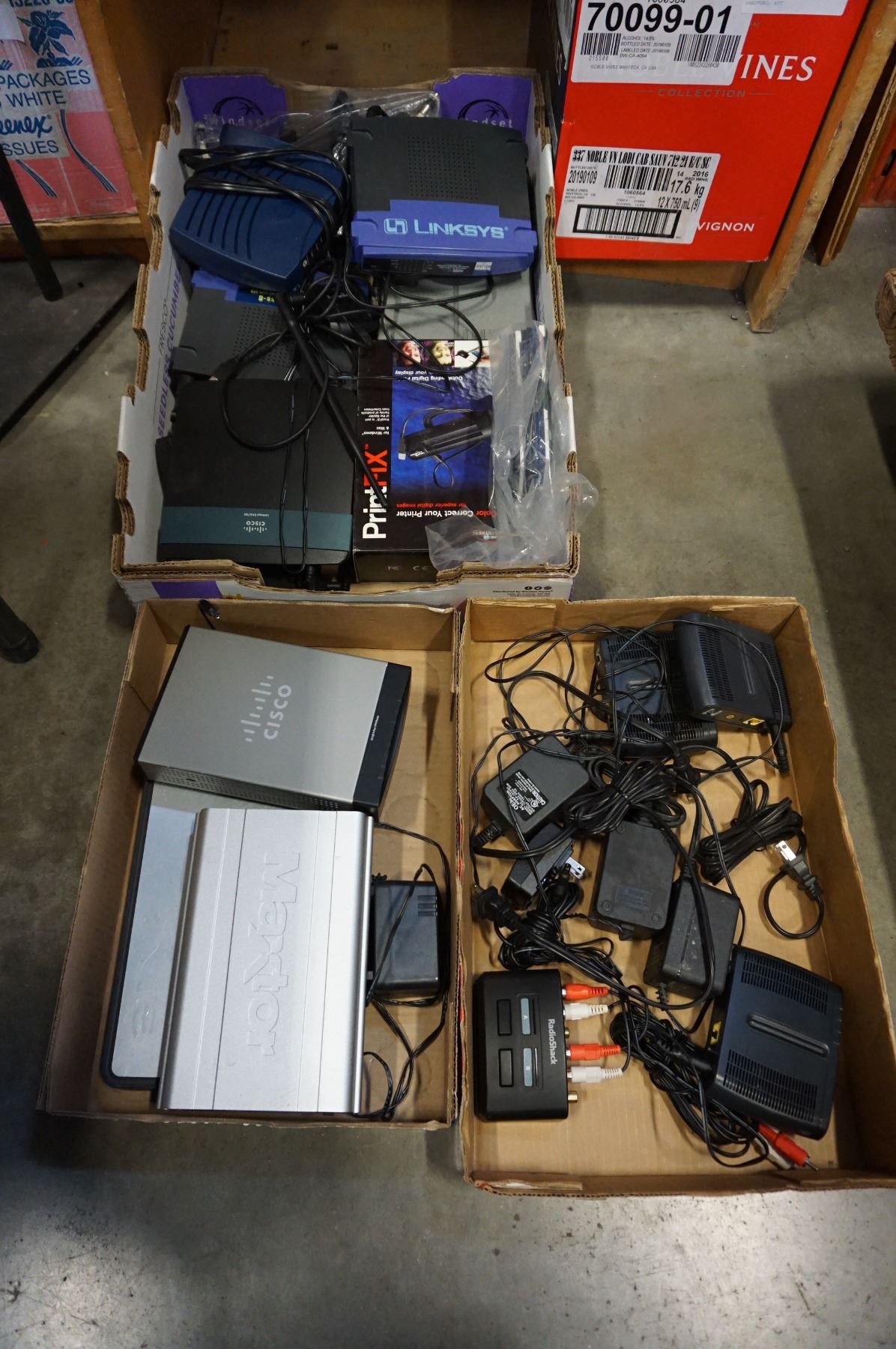 3 TRAYS OF HARD DRIVERS, ROUTERS, COMPUTER ELECTRONICS
