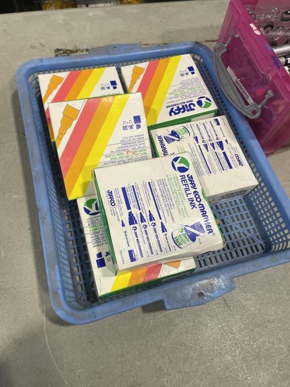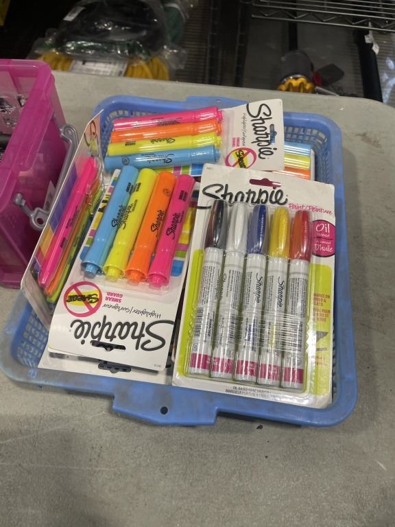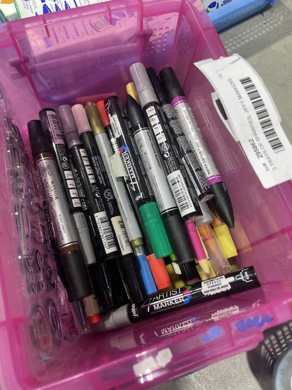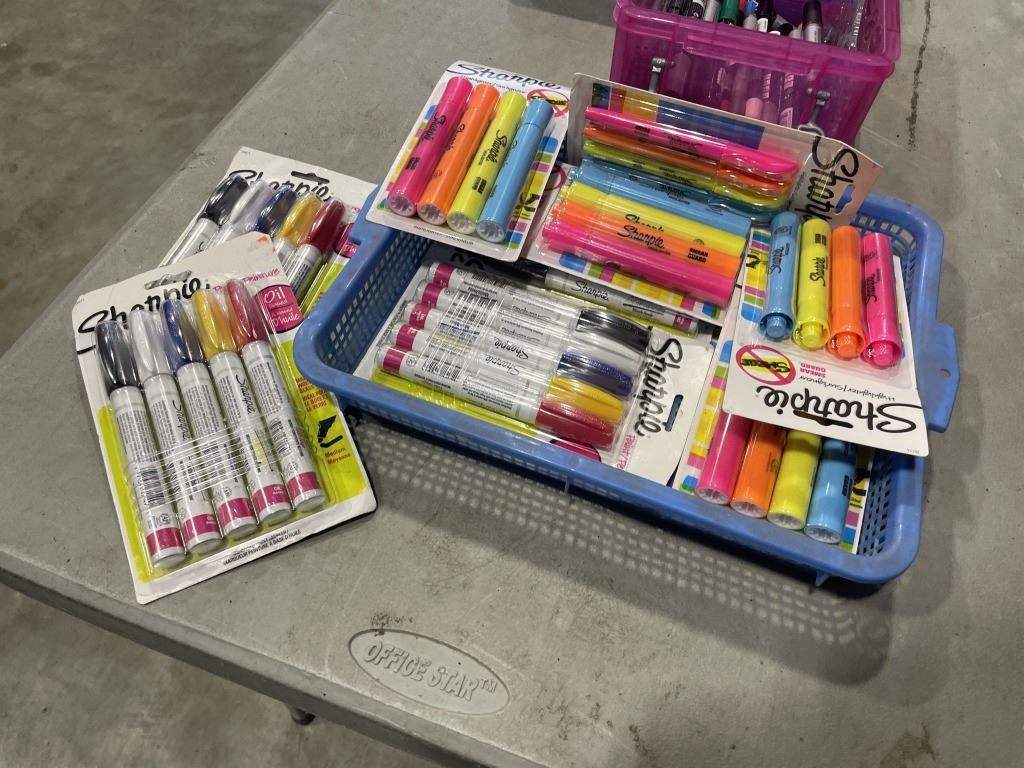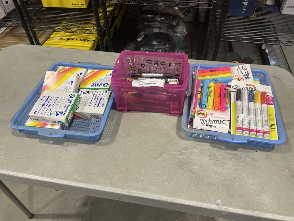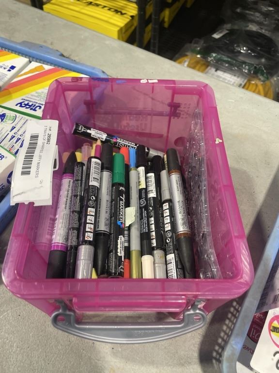 3 TRAYS OF SHARPIES, JIFFY MARKERS AND ARTIST MARKERS