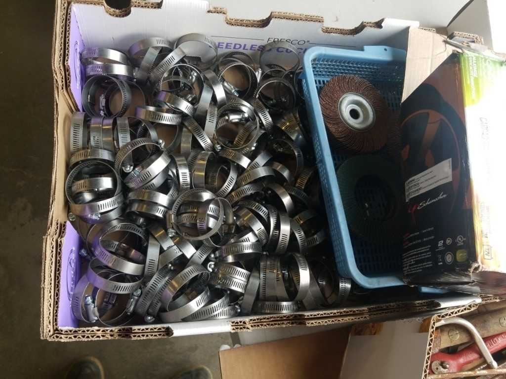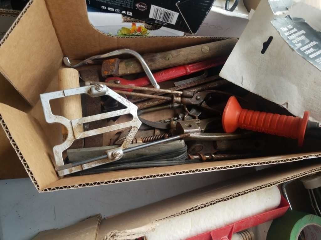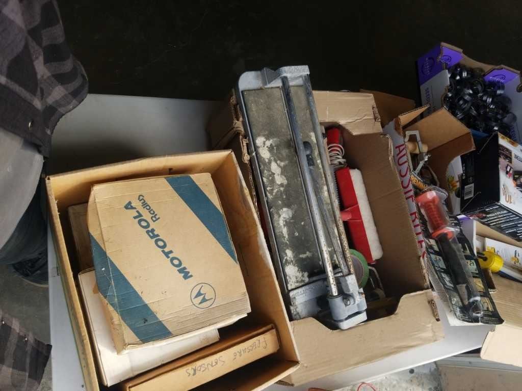3 TRAYS OF TOOLS, HARDWARE, TILE CUTTER