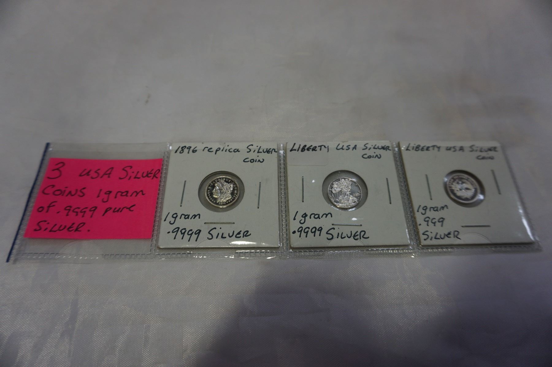 3 USA SILVER COINS 1 GRAM OF .9999 PURE SILVER