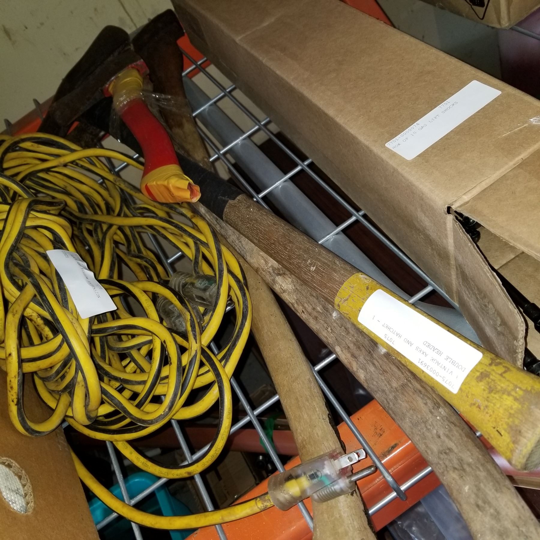 3 VINTAGE AXES AND HATCHET - 1 DOUBLE HEADED