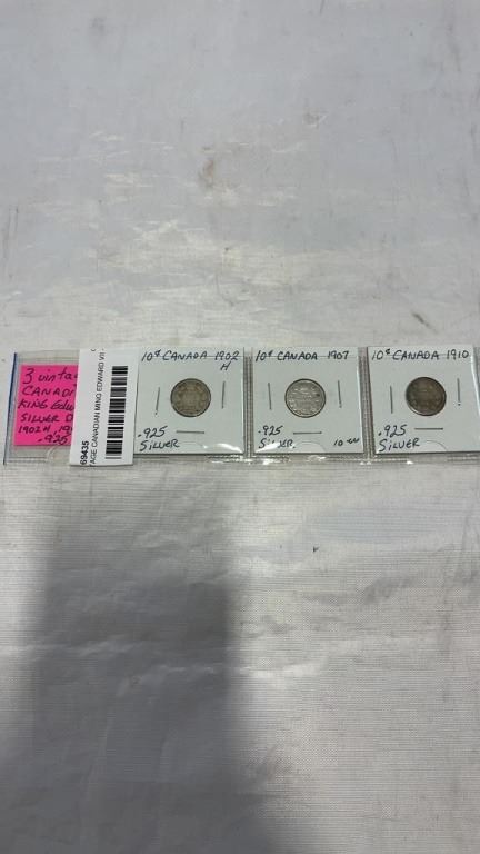 3 VINTAGE CANADIAN MING EDWARD VII - 1902, 1907, 1910 .925 SILVER