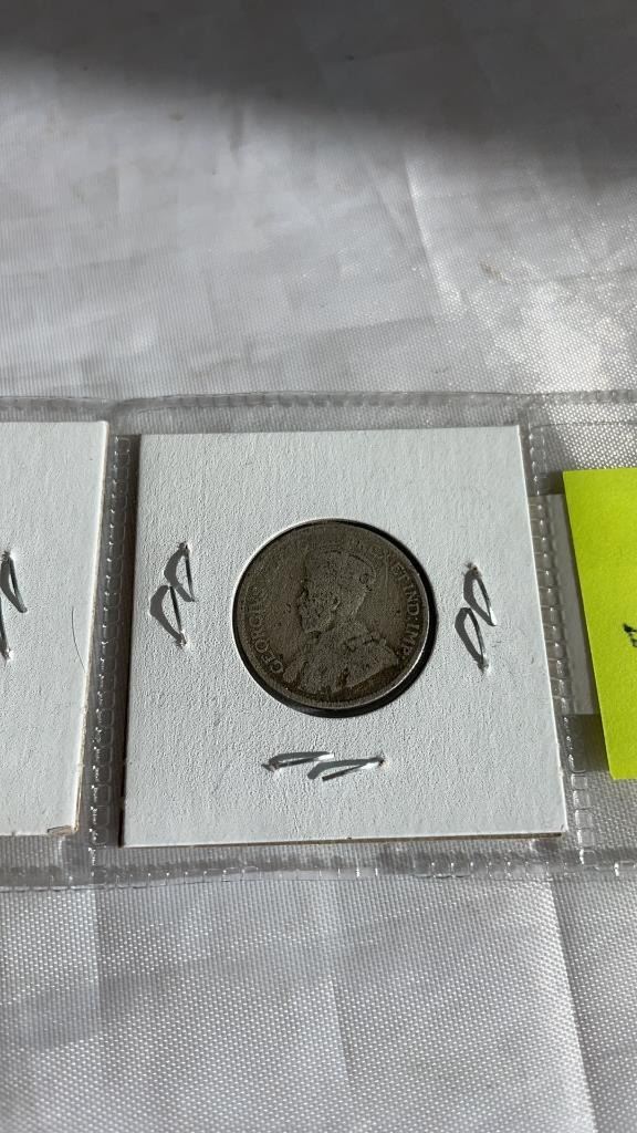 3 VINTAGE GEORGE V COINS - 1918 QUARTER, 1917 AND 1919 DIMES .925 SILVER