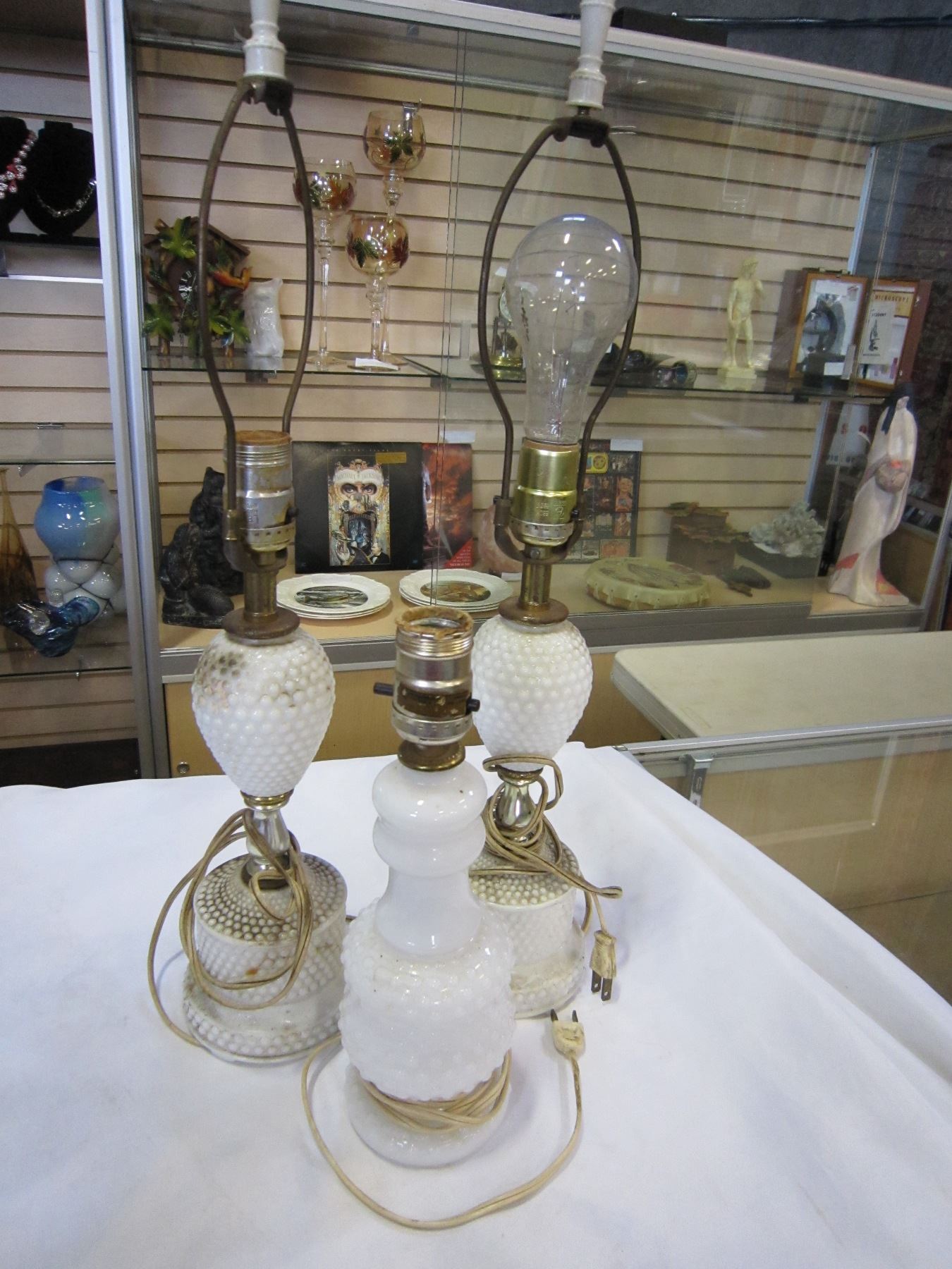 3 VINTAGE HOBNAIL LAMPS