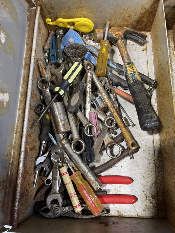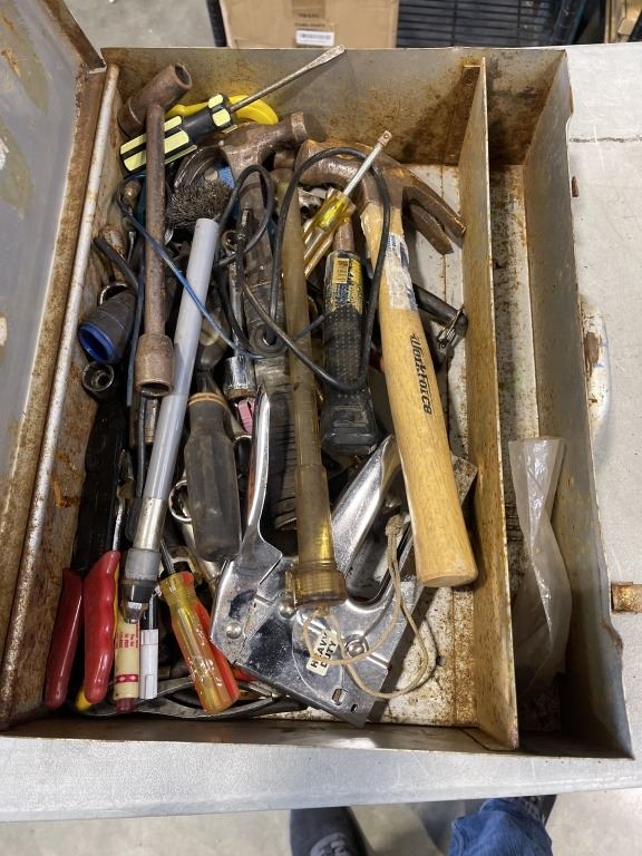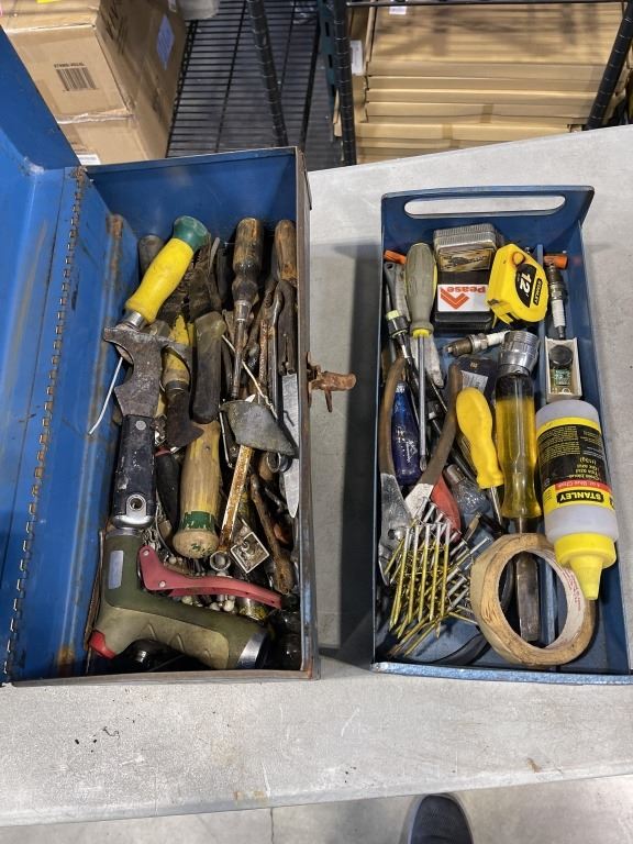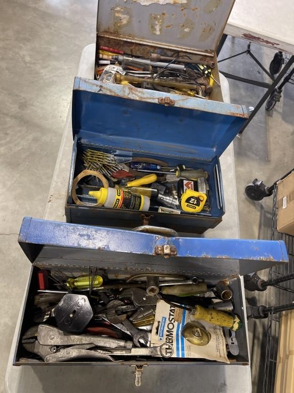 3 VINTAGE MATEL TOOL BOXES W/ CONTENTS