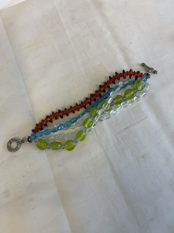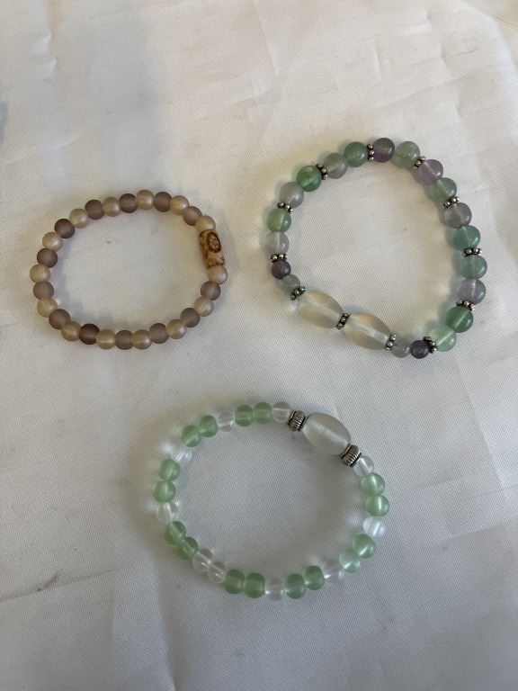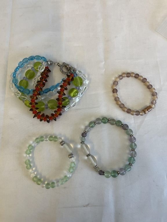 3 VINTAGE STONE BEADS BRACELETS AND 4 STRAND BEADS BRACELET