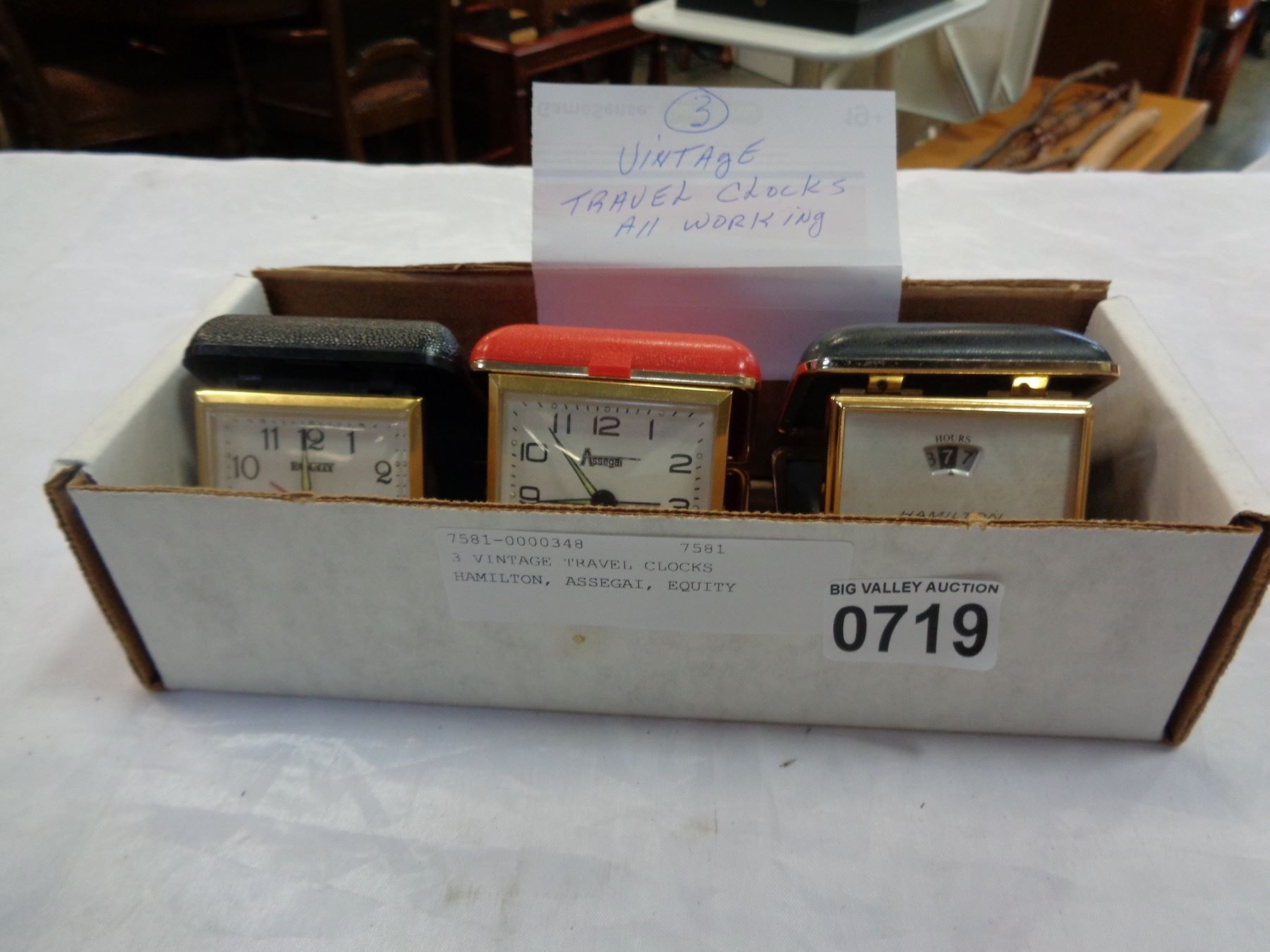 3 VINTAGE TRAVEL CLOCKS HAMILTON, ASSEGAI, EQUITY