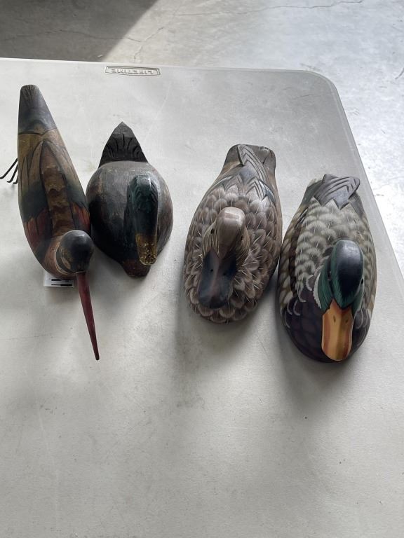 3 VINTAGE WOODEN DECOYS AND BIRD FIGURE