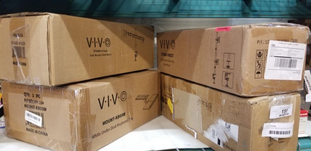 3 VIVO DUAL MONITOR DESK MOUNTS AND UNDER DESK KEYBOARD TRAY