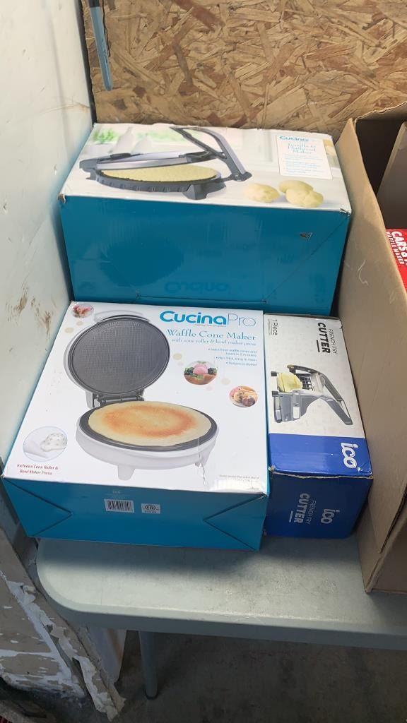 3 WAFFLE MAKERS, CORDLESS CREPE MAKER AND PIZZA STONE