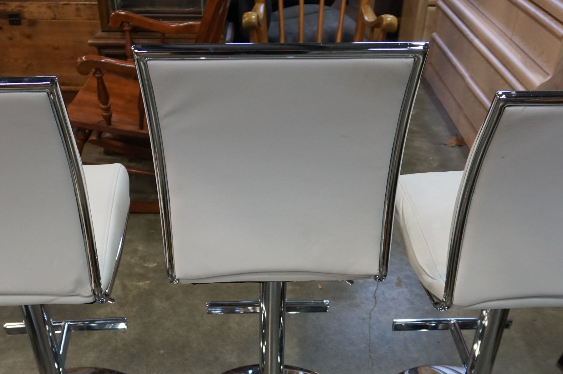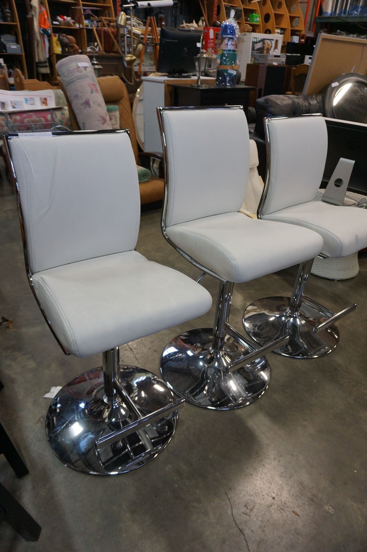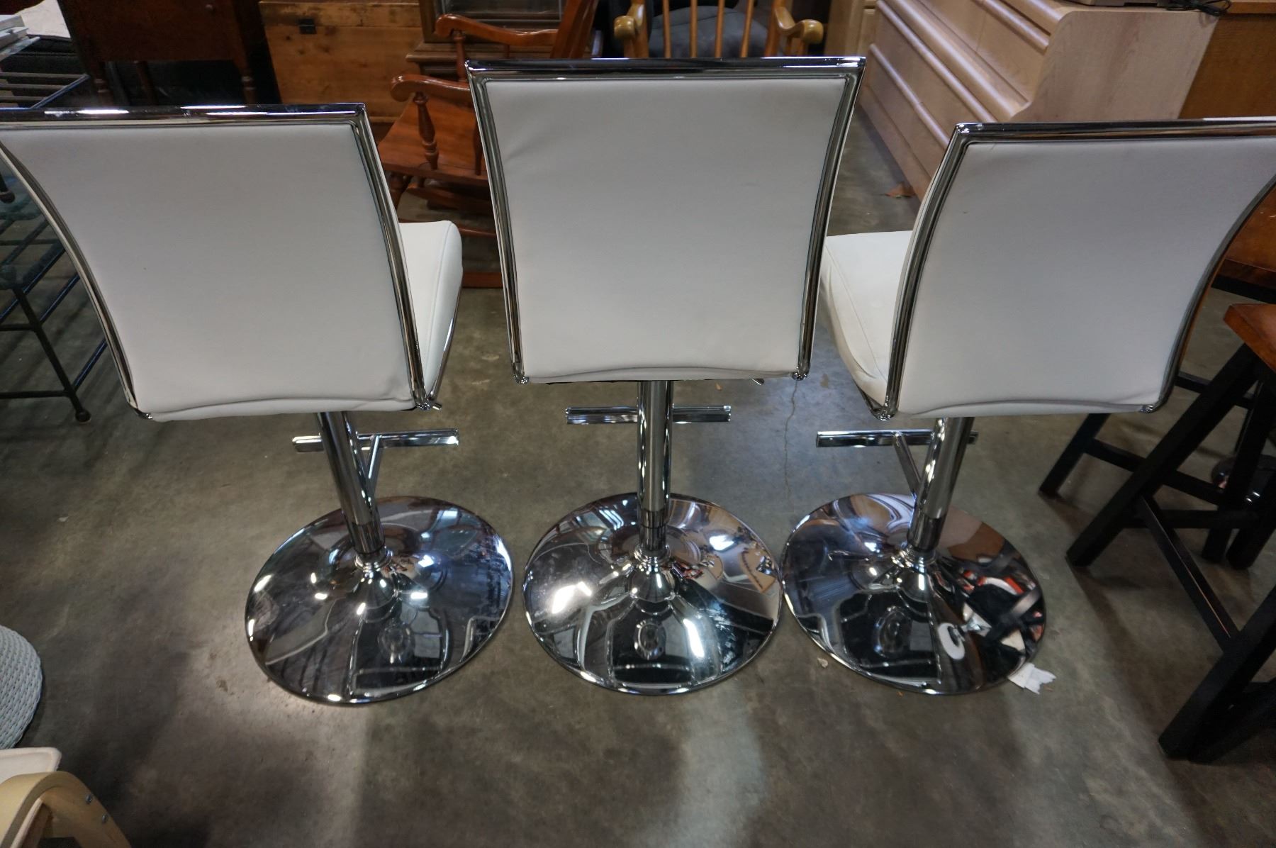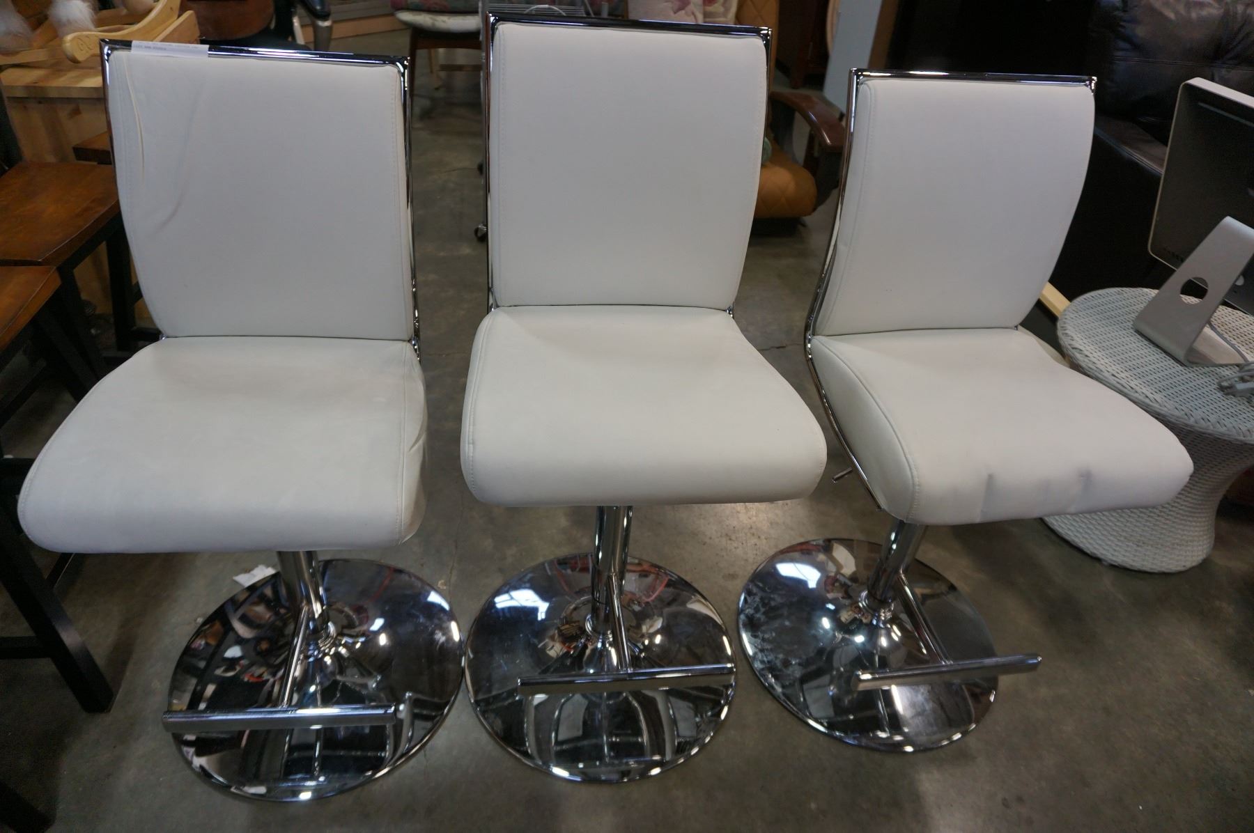 3 WHITE AND CHROME LEATHER GAS LIFT BAR STOOLS