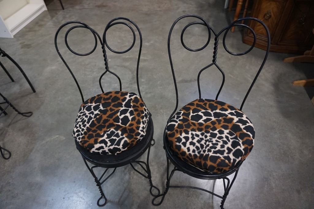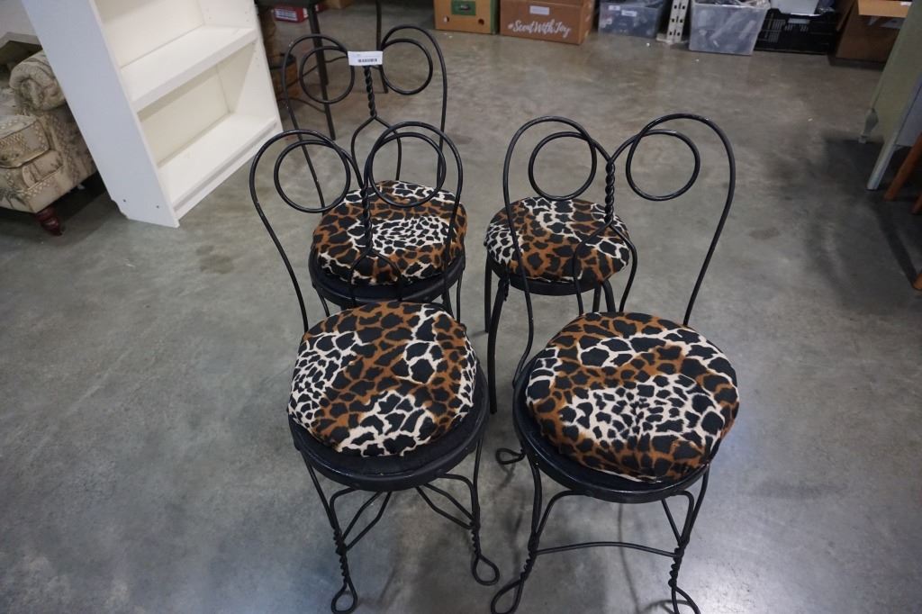 3 WIRE METAL CHAIRS AND STOOL WITH LEOPARD PRINT CUSHIONS