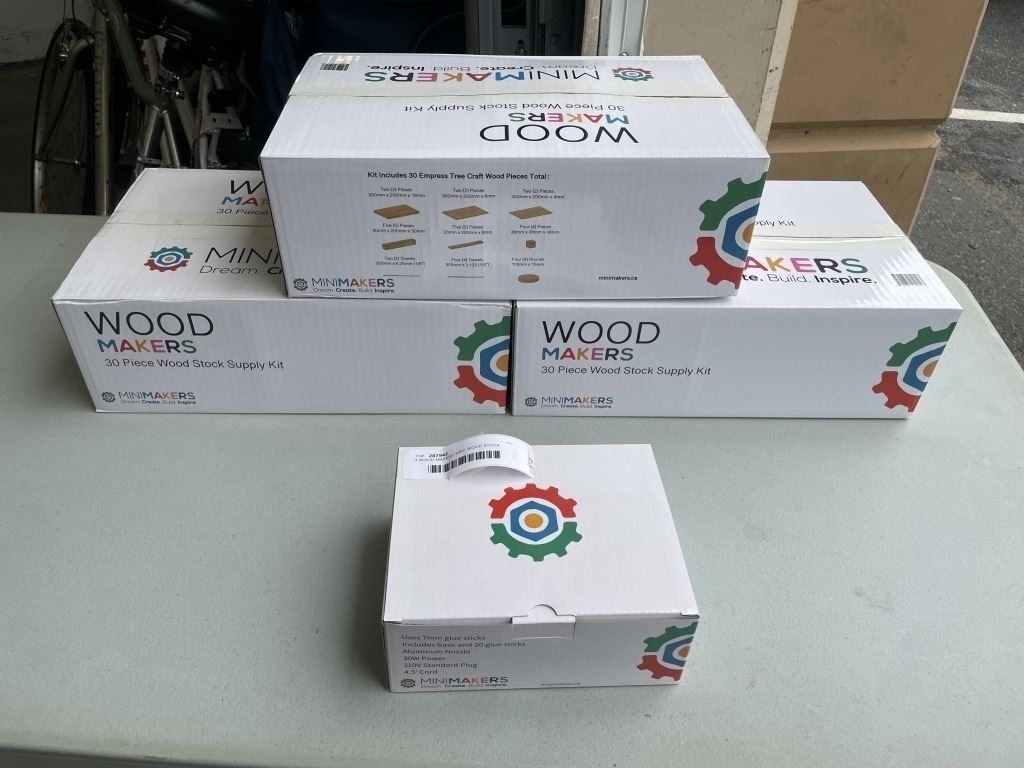 3 WOOD MAKERS 30PC WOOD STOCK SUPPLY KITS AND HOT GLUE GUN STAND W/ 20 GLUE STICKS
