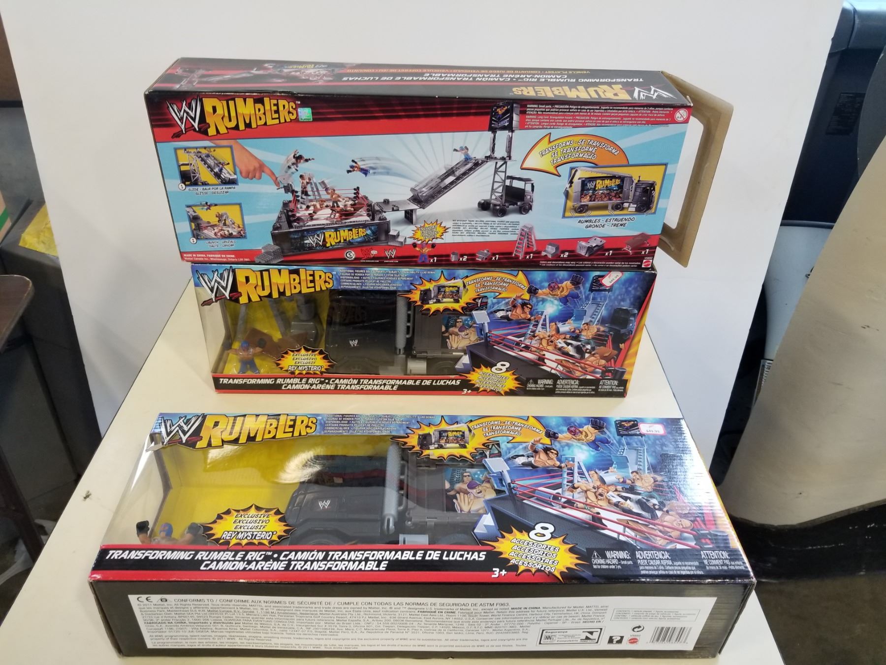 3 WWE RUMBLERS TRANSFORMING RUMBLE RIG PLAY SETS