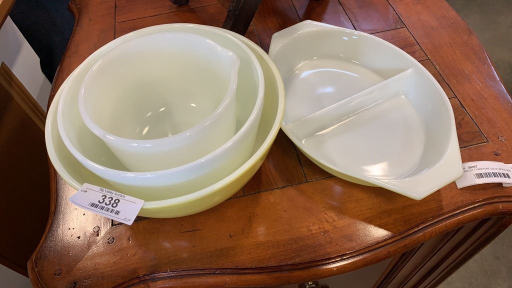 3 pyrex bowls and sunbeam bowl