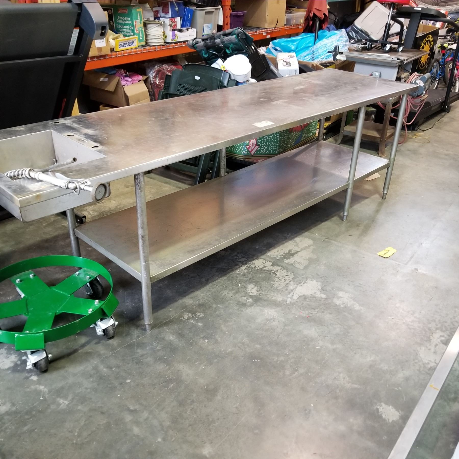 30" x 9-1/2FT STAINLESS STEEL PREP TABLE W/ SINK TAP WASHER