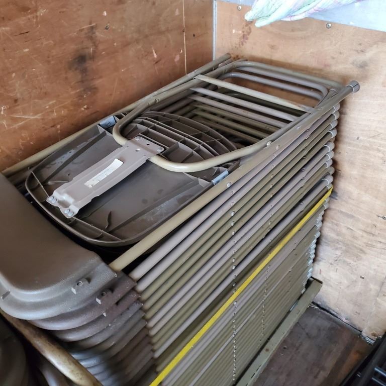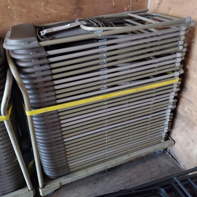 31 FOLDING STACKING CHAIRS WITH CHAIR CART