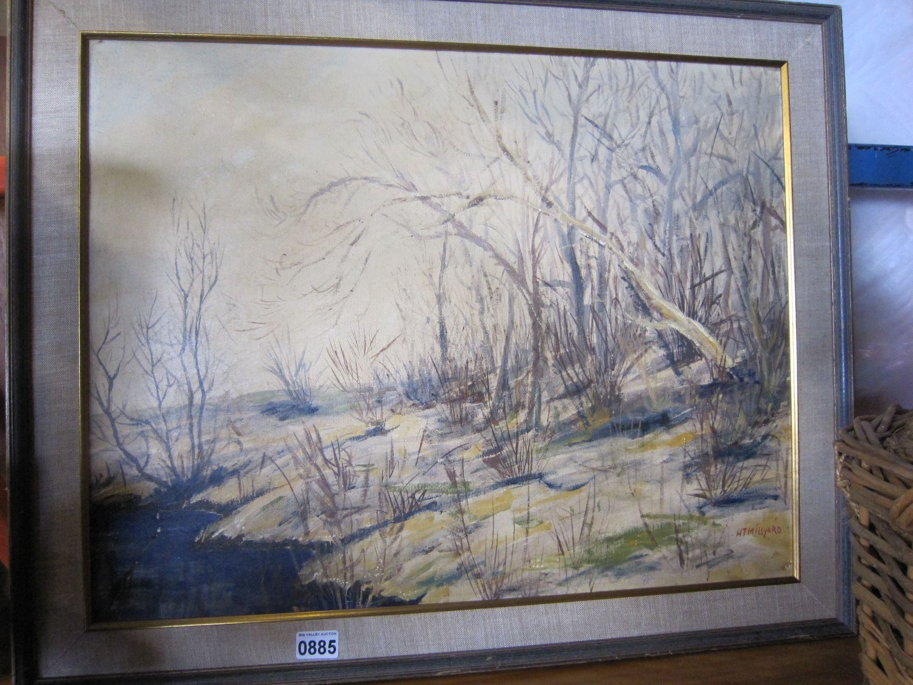 31 x 26 MARSHLAND WATER COLOUR ON BOARD IN GOLD FRAME