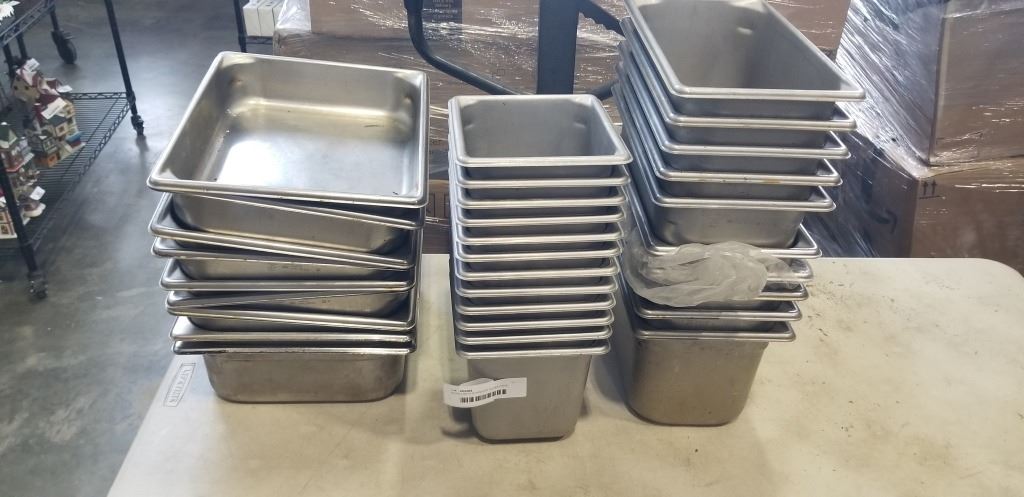 32 VOLLRATH STAINLESS SUPER PANS, ASSORTED SIZE 10X12, 6X7 AND 13X7