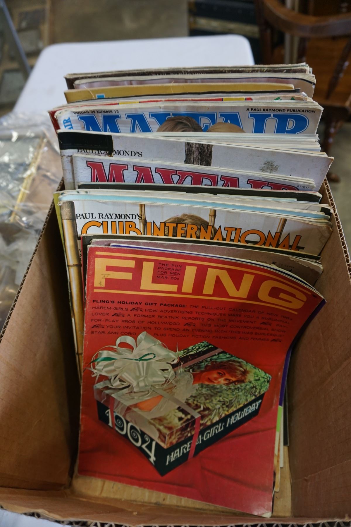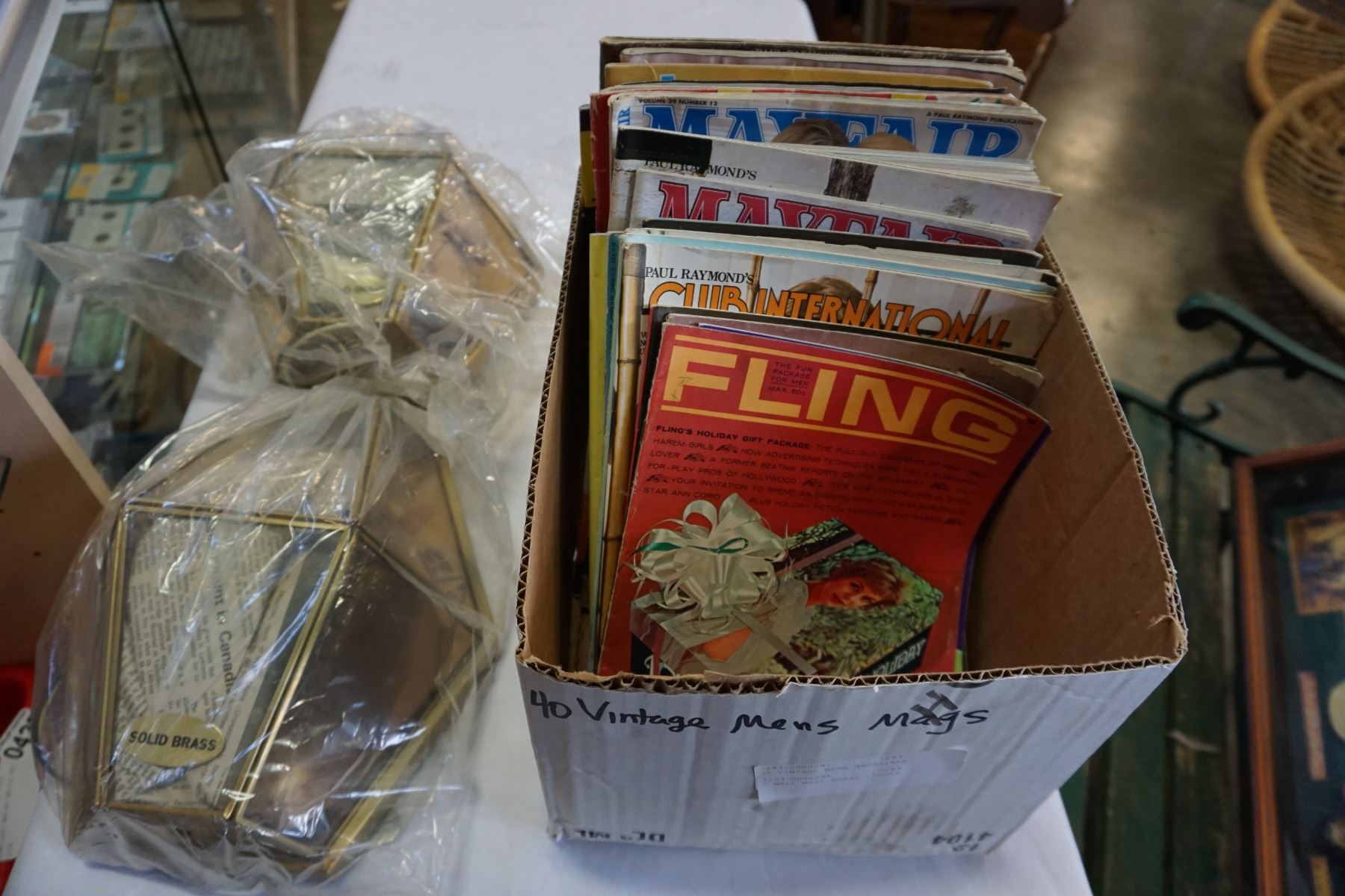 35 VINTAGE MENS MAGAZINES AND 2 WALL MOUNT BRASS LIGHTS