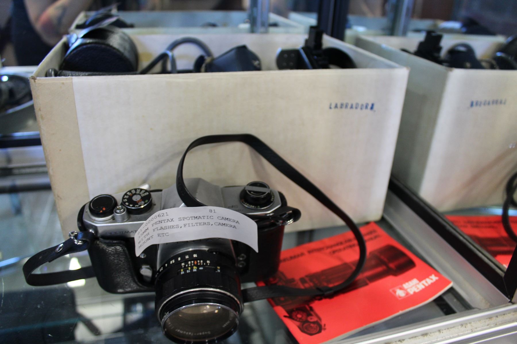 35MM PENTAX SPOTMATIC CAMERA WITH FLASHES,FILTERS,CAMERA MOUNT ETC