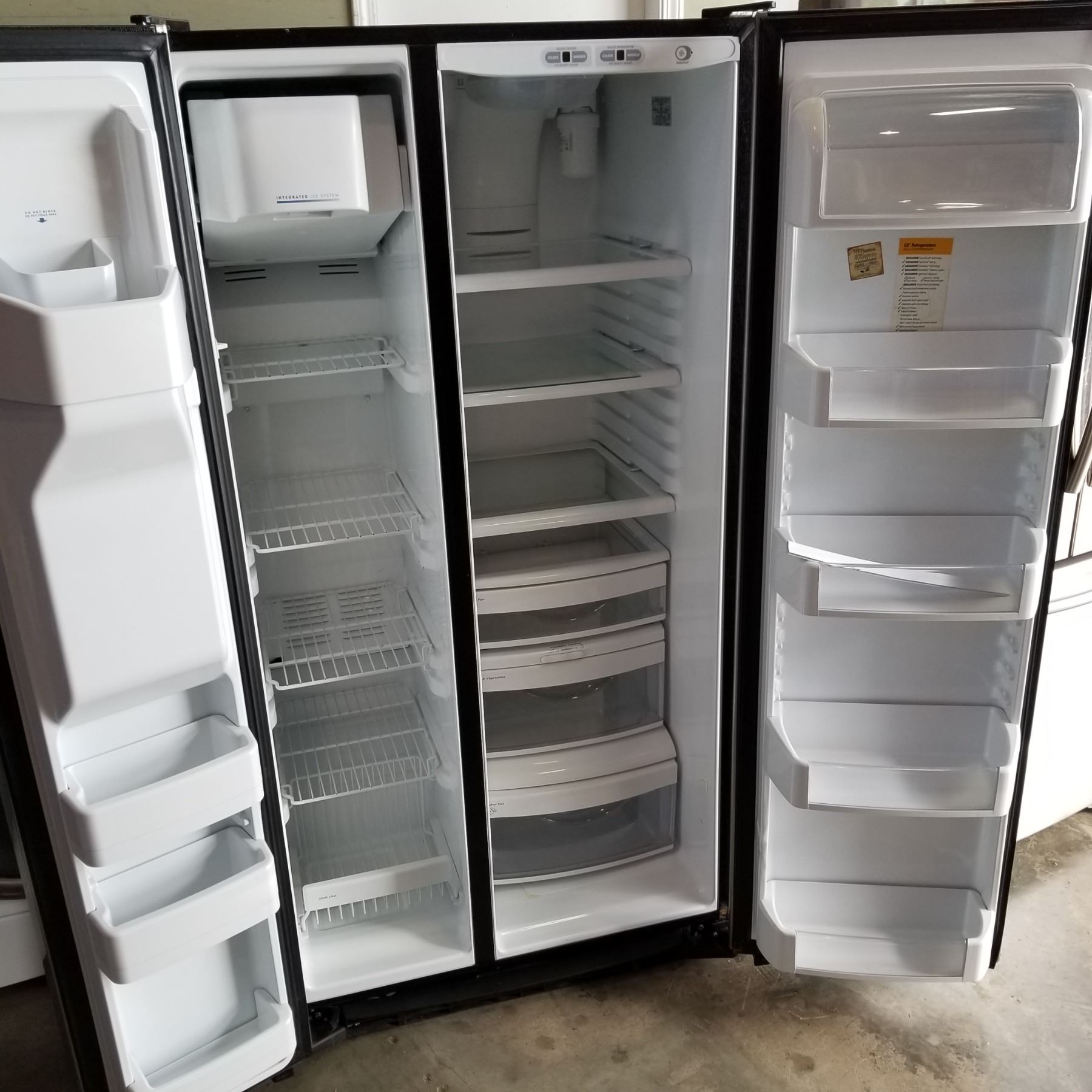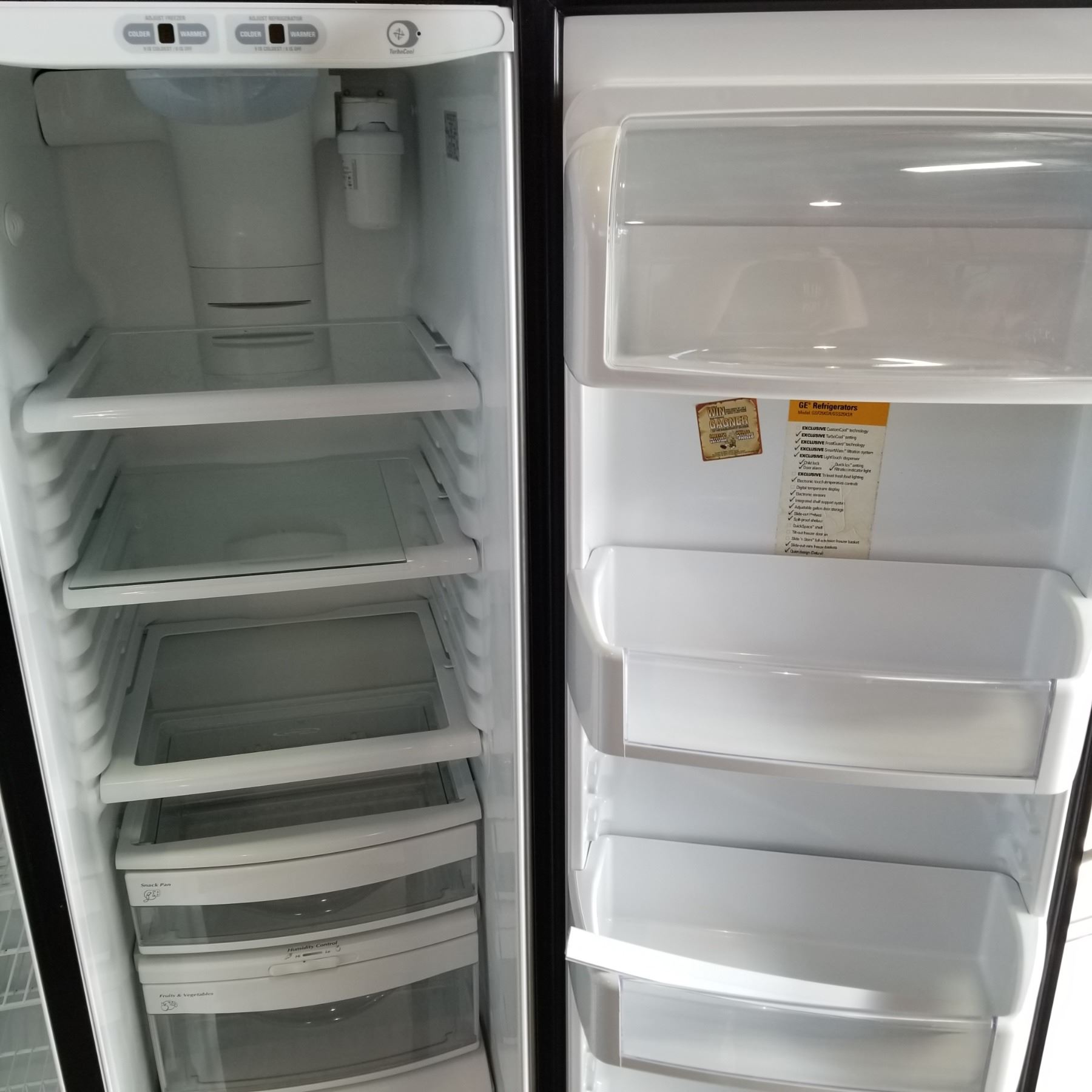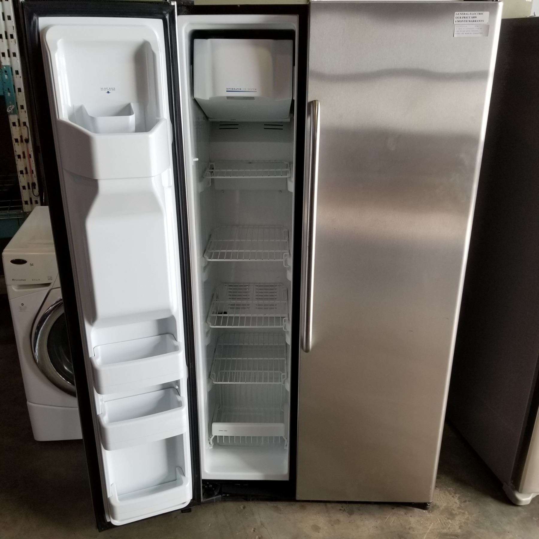 36 INCH GE STAINLESS SIDE BY SIDE FRIDGE WITH FREEZER, TESTED AND WORKING GUARANTEED