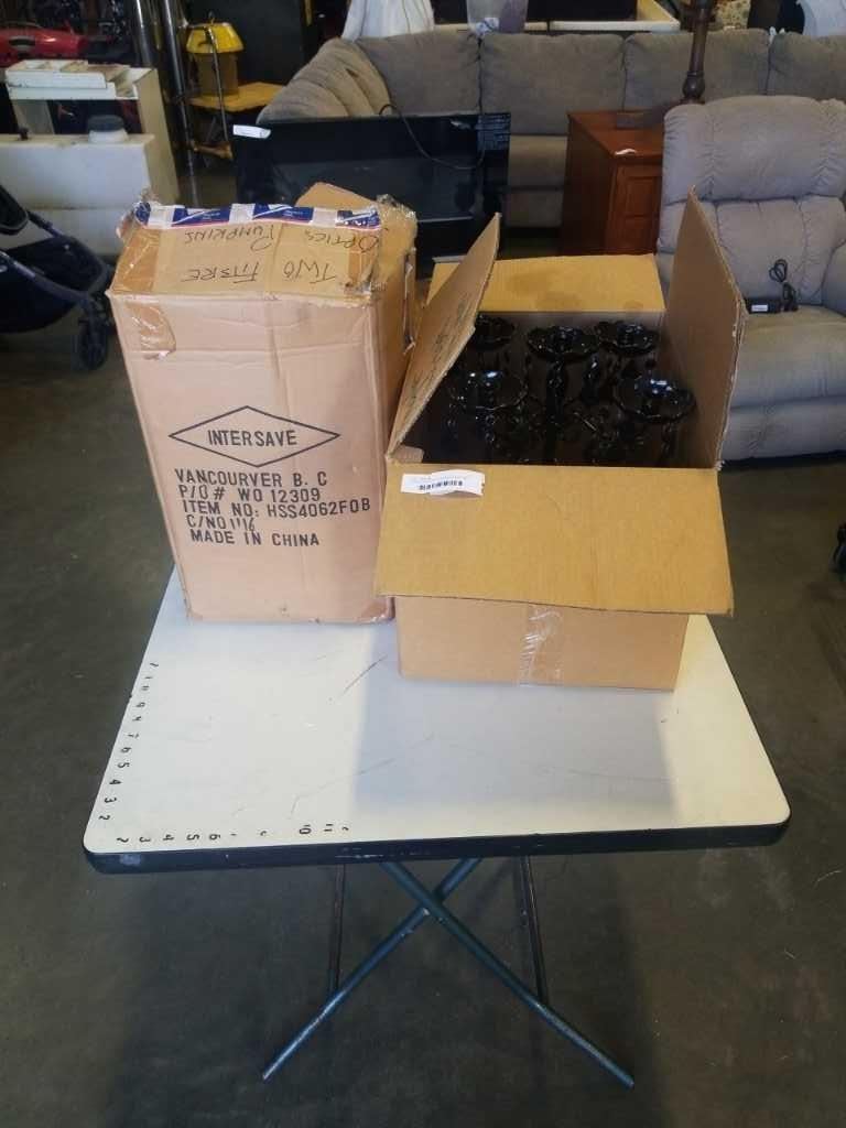 36 INCH STANDING PUMPKIN FIGURE AND BLACK CANDLEABRA