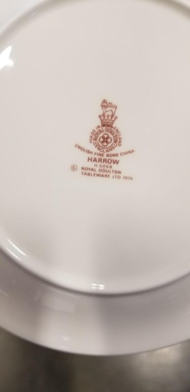 39PCS ROYAL DOULTON HARROW CHINA - 8 CUPS AND SAUCERS, 6 SIDE PLATES, 8 LUNCHEON PLATES, 8 DINNER PLATES, 8 BOWLS, AND SERVING PLATTER