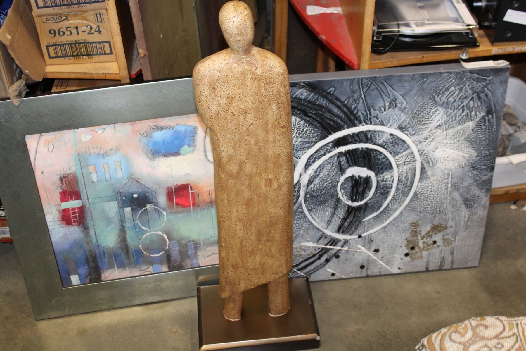 3FT STANDING ABSTRACT FIGURE OIL ON CANVAS AND FRAMED HOUSE PRINT