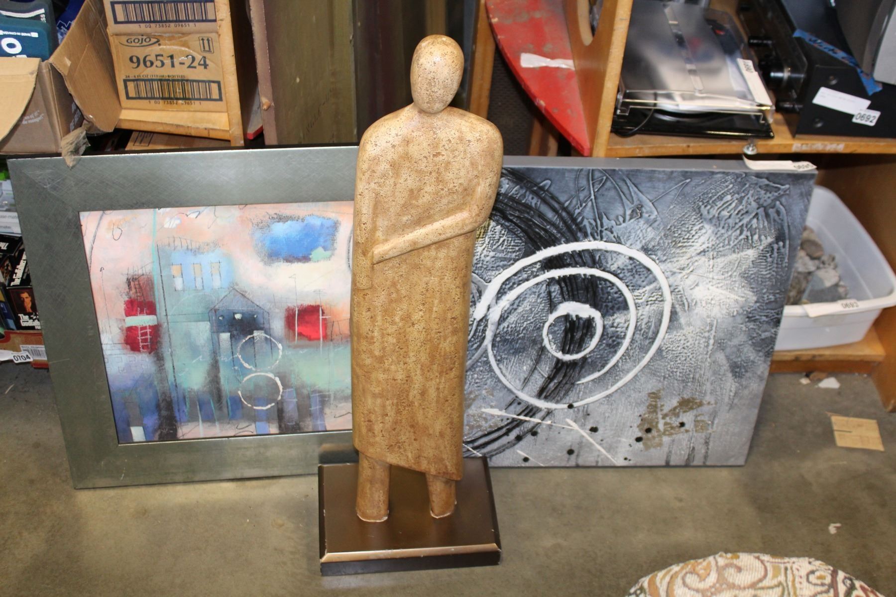 3FT STANDING ABSTRACT FIGURE OIL ON CANVAS AND FRAMED HOUSE PRINT