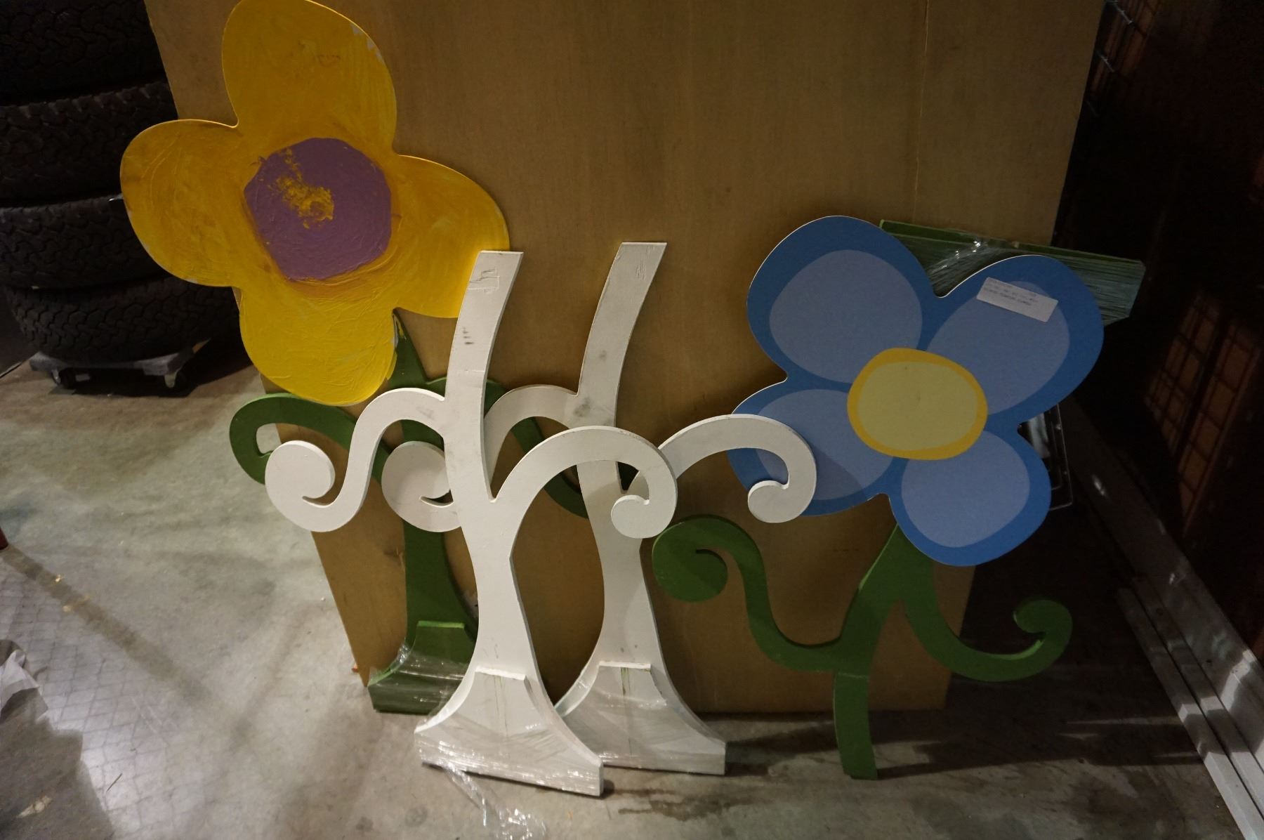 3FT TALL AND 4FT TALL WOOD PAINTED STANDING FLOWERS