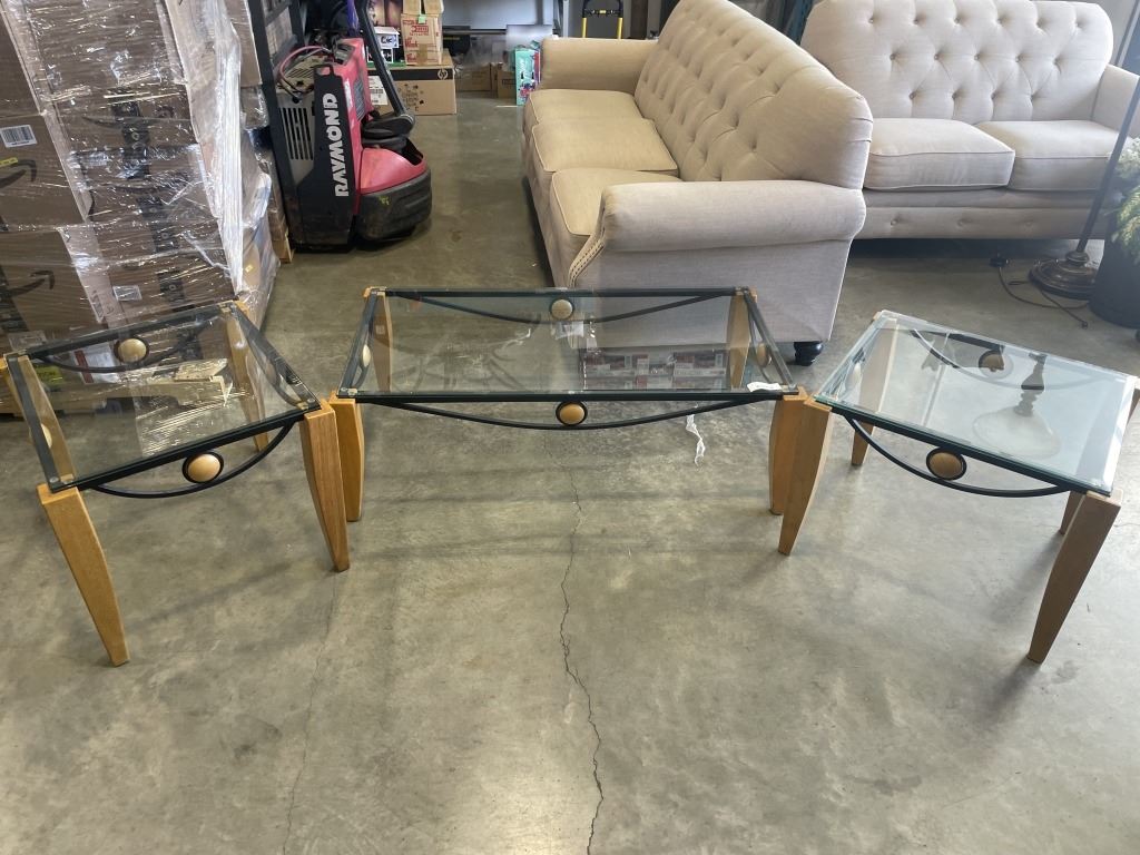 3PC GLASS TOP COFFEE AND ENDTABLE SET
